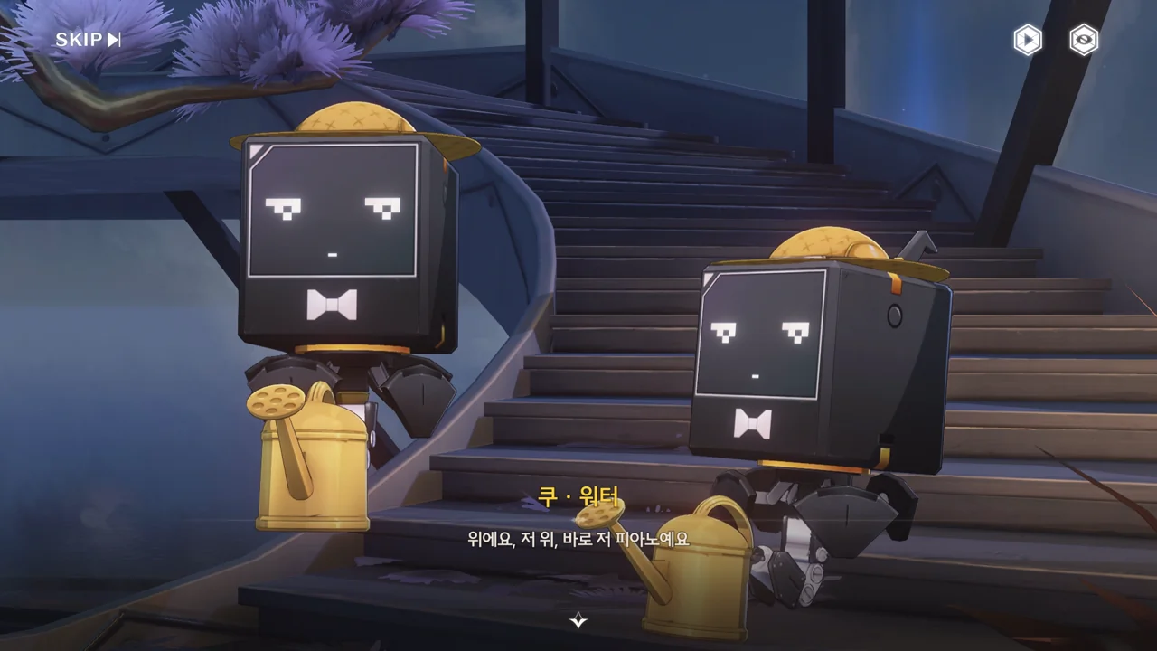 쿠쿠 남매에게 조정 장치가 어디에 있냐 묻자, 저 위에 있는 피아노가 조정 장치라고 알려준다.