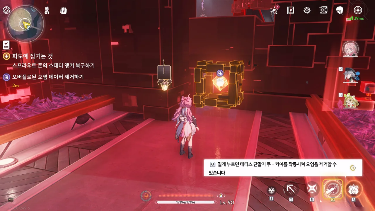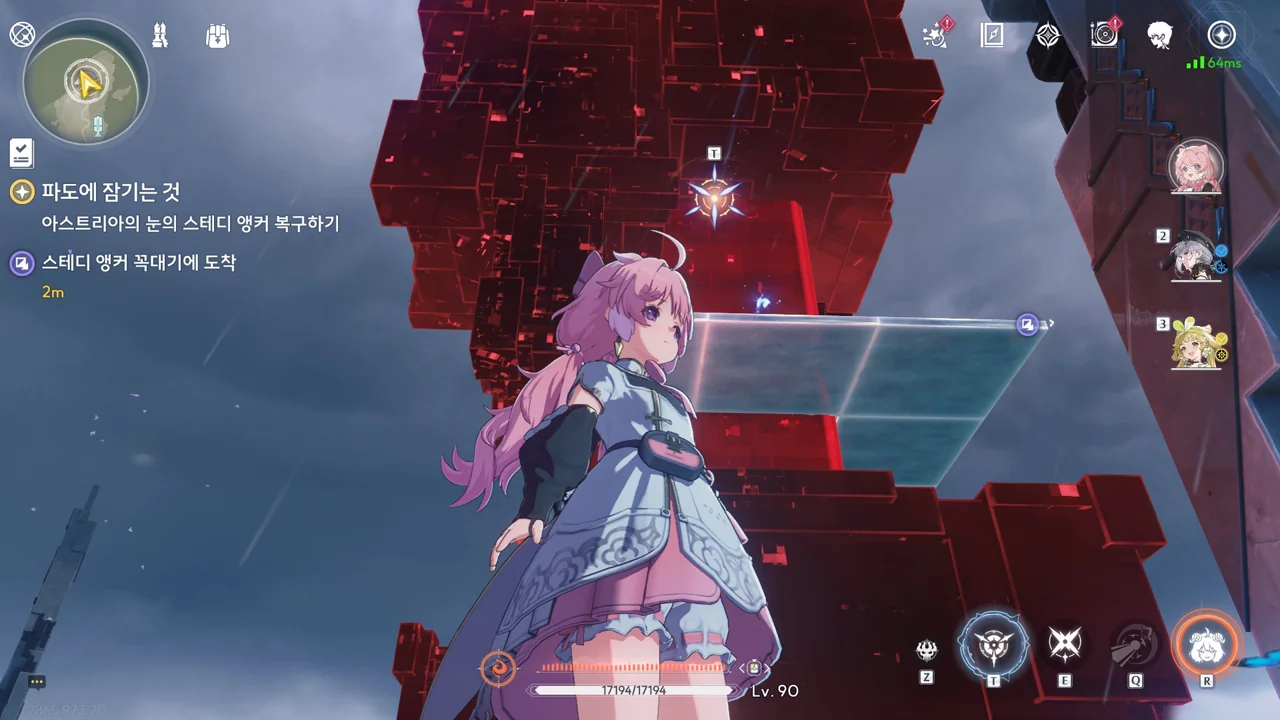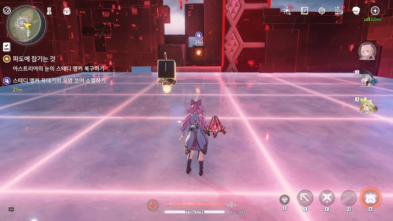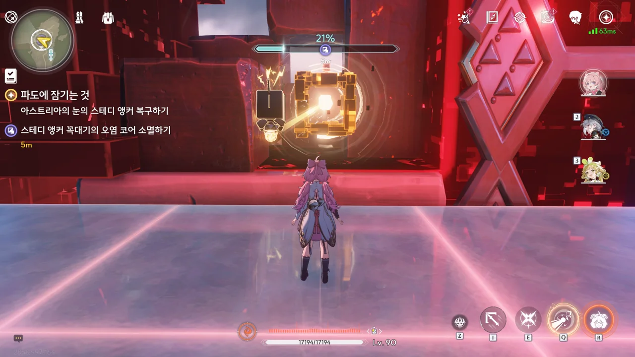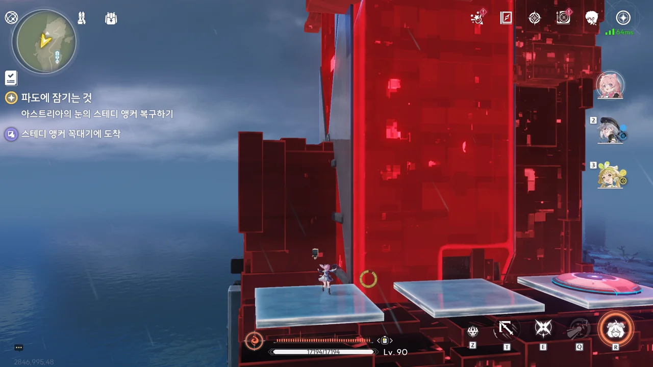 스테디 앵커 주변을 둘러싼 발판을 밟고 꼭대기에 있는 오염 데이터를 제거하자, 스테디 앵커를 둘러싸고 있던 오염 데이터가 모두 사라졌다.
