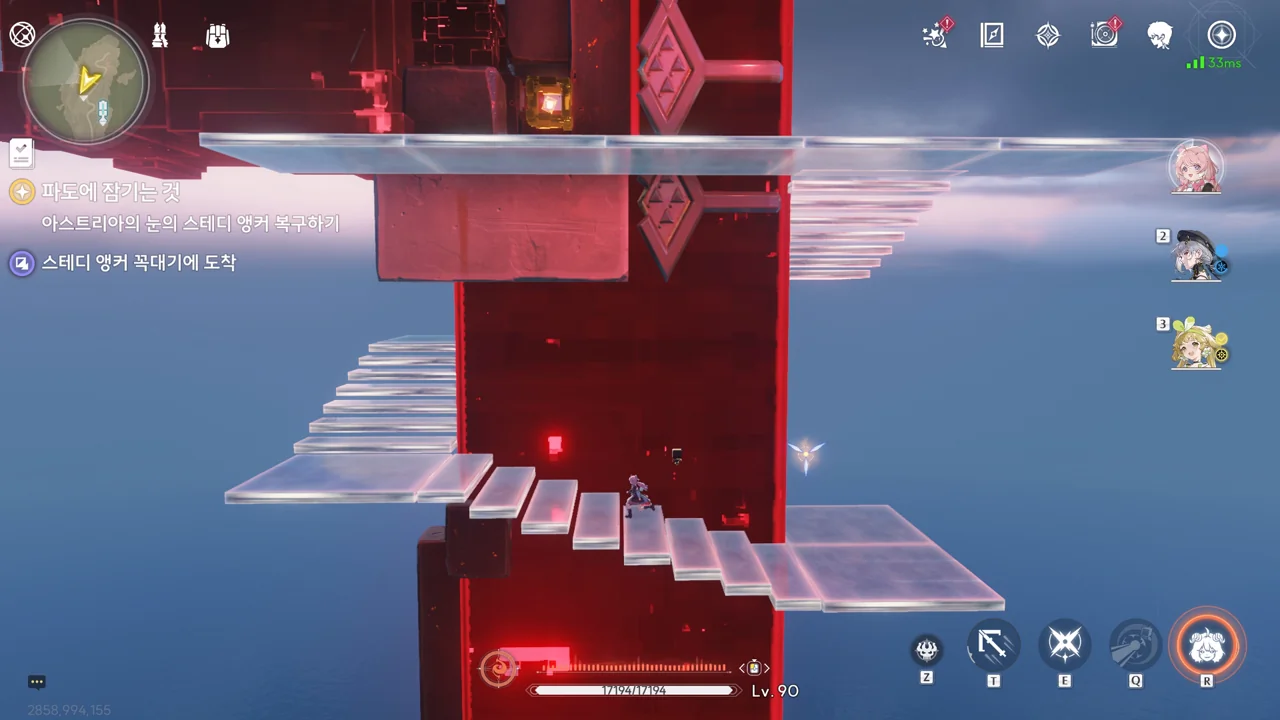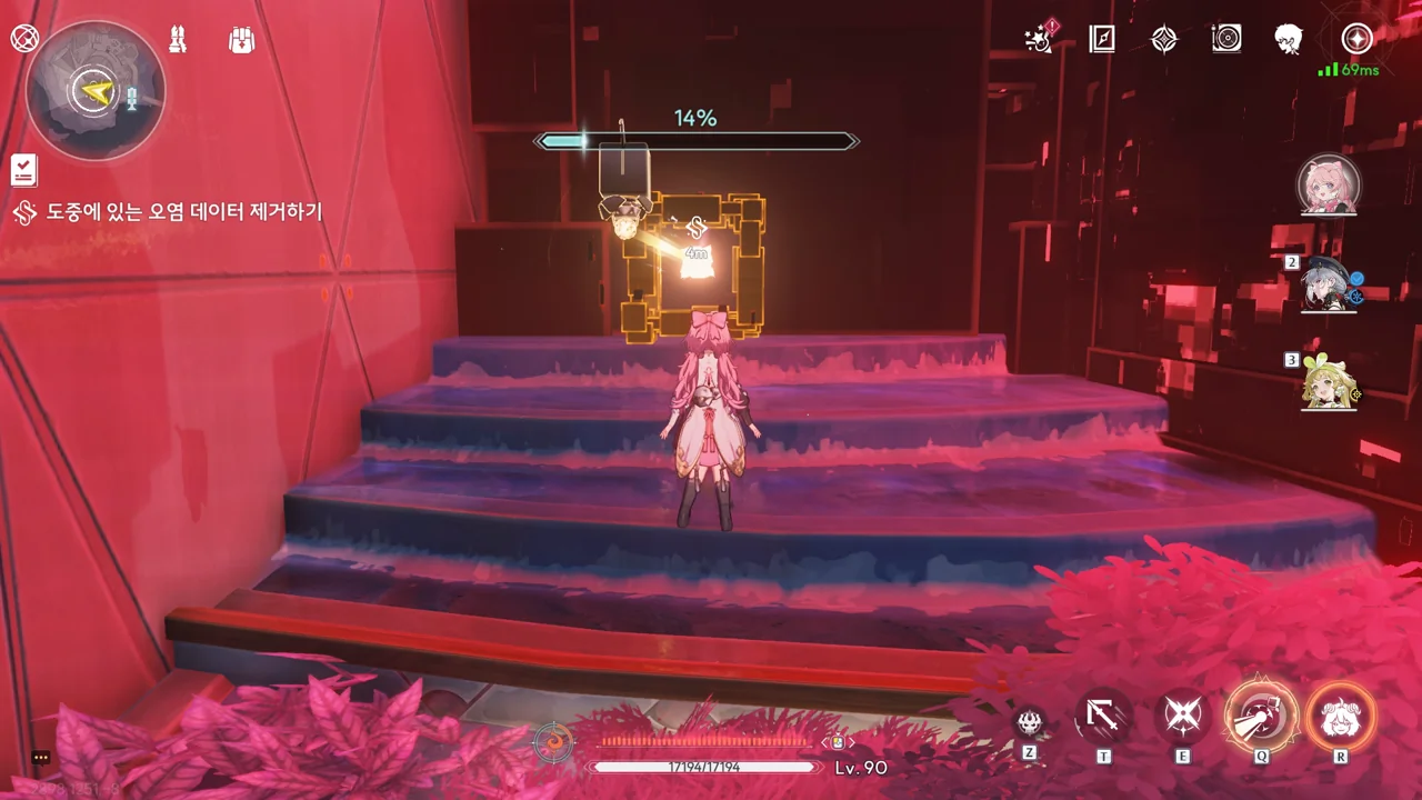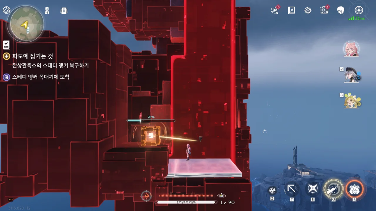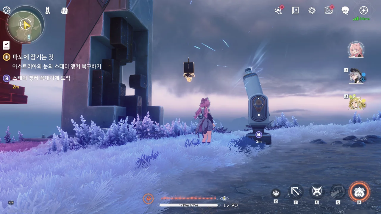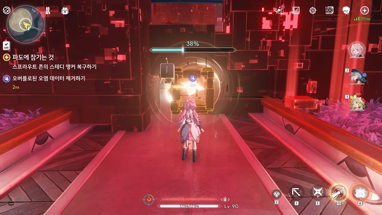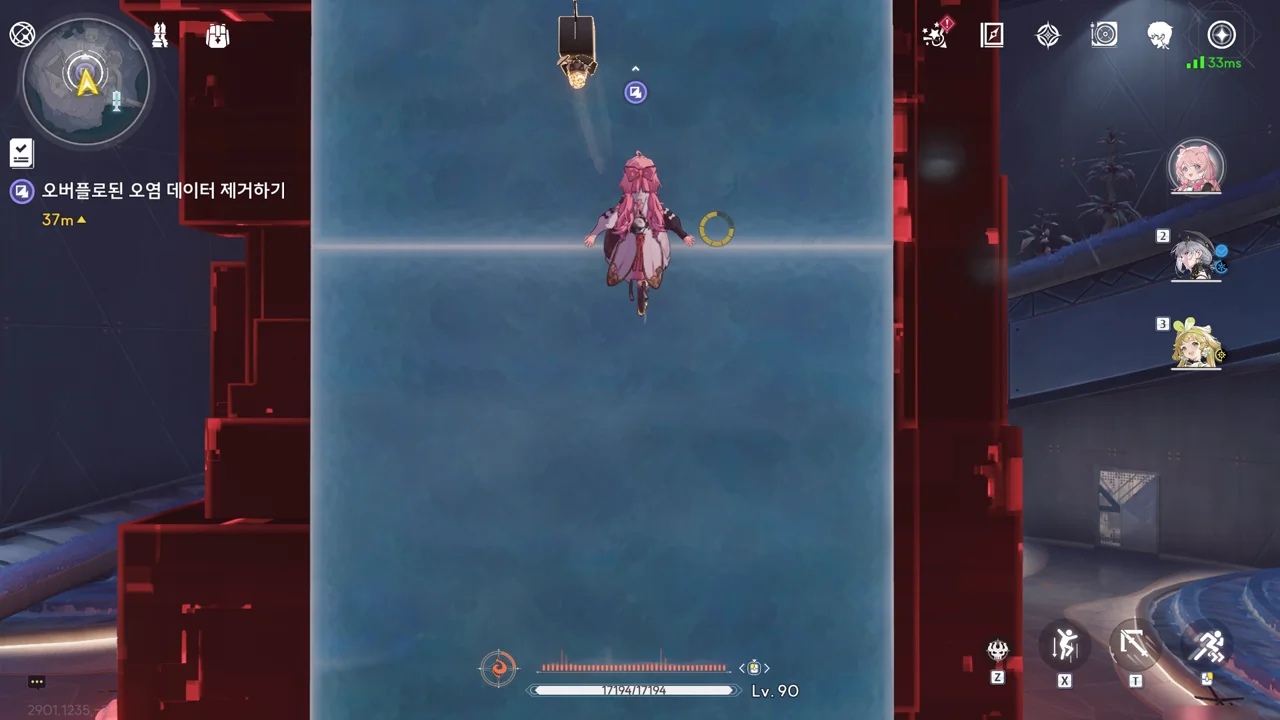 스테디 앵커 주변을 둘러싼 발판을 밟고 꼭대기에 있는 오염 데이터를 제거하자, 스테디 앵커를 둘러싸고 있던 오염 데이터가 모두 사라졌다.
