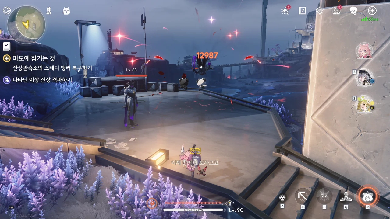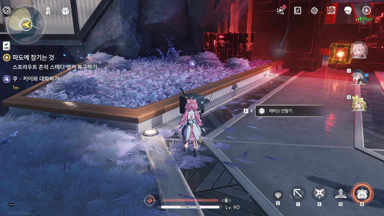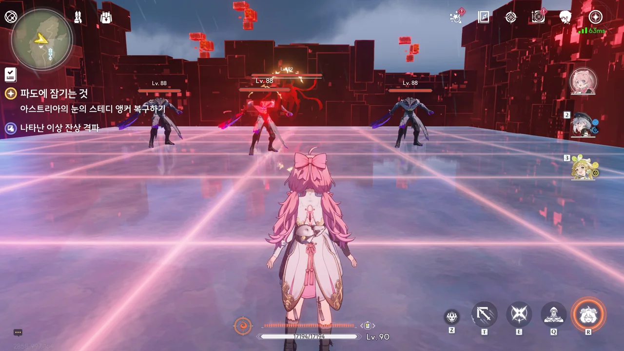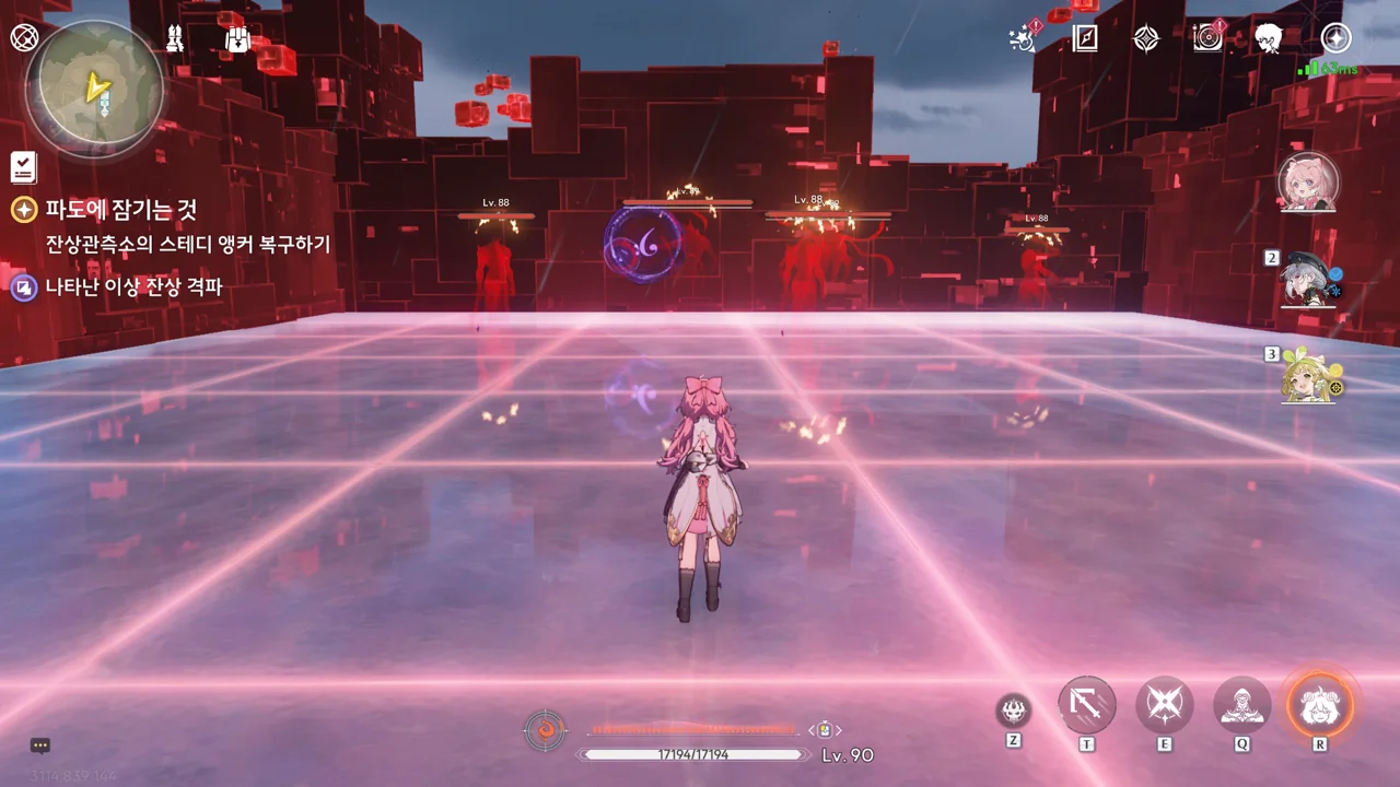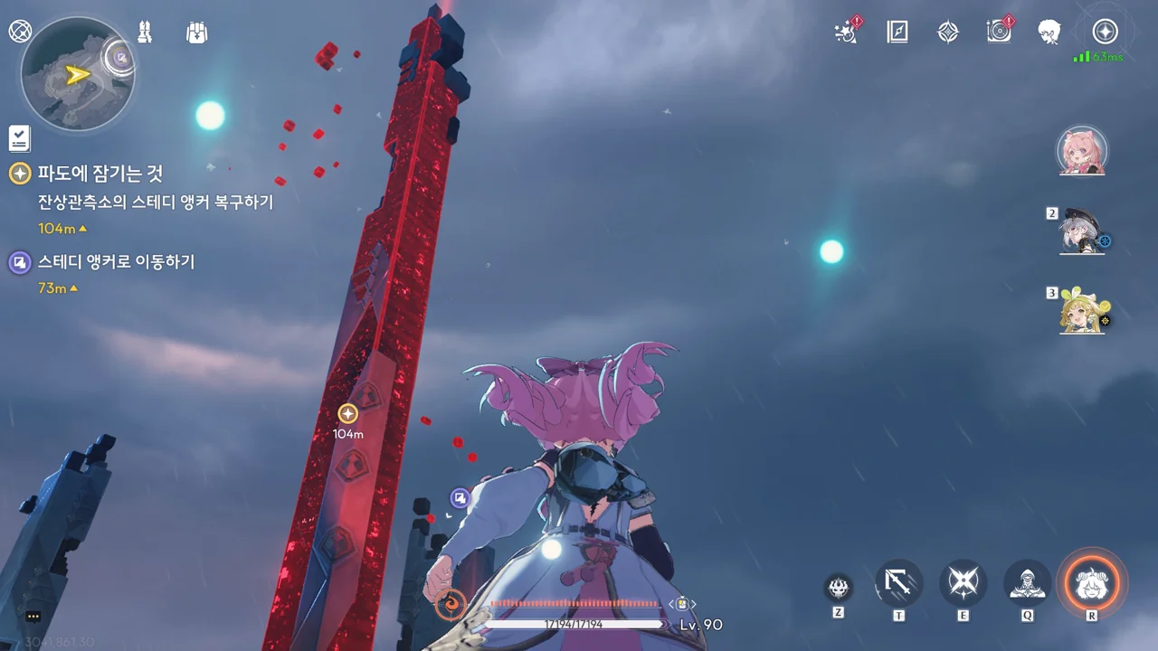 스테디 앵커 주변을 둘러싼 발판을 밟고 꼭대기에 있는 오염 데이터를 제거하자, 스테디 앵커를 둘러싸고 있던 오염 데이터가 모두 사라졌다.