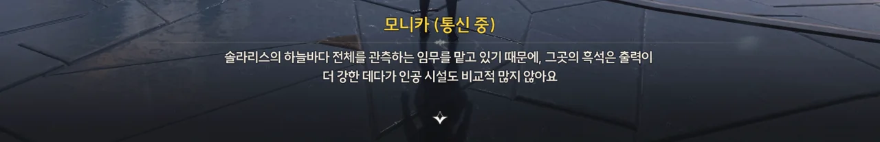 원신도 그렇고 명조도 그렇지만, 유달리 중국 게임에서 별을 강조하는 건 조금 신기하다고 생각한다. '뭇별'이란 '많은 별'이란 뜻을 갖고 있는데, 자주 쓰이지 않는 이 단어가 두 번씩이나 등장한 건 결코 우연이 아닐 테니까.
