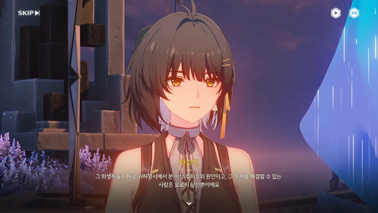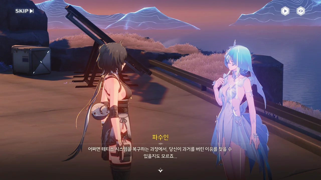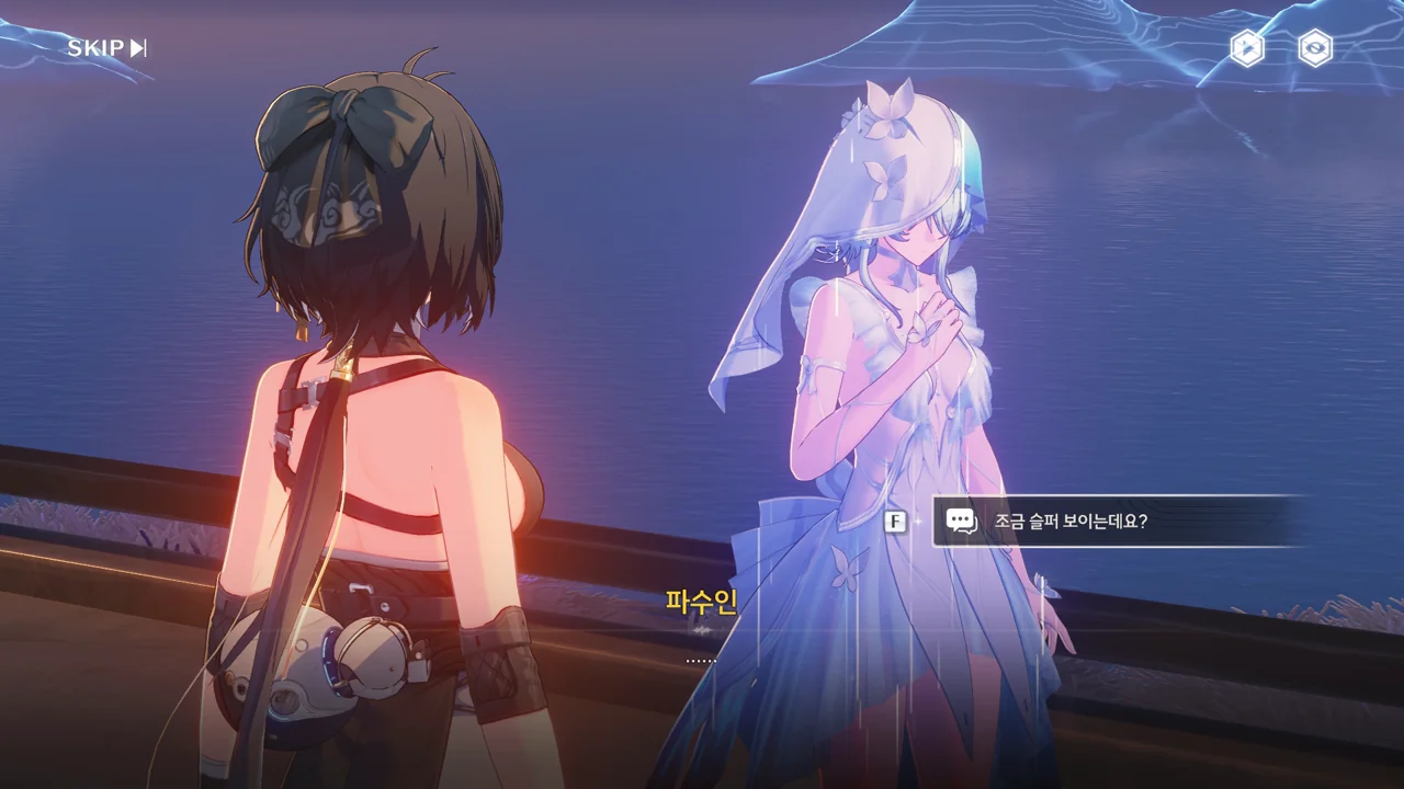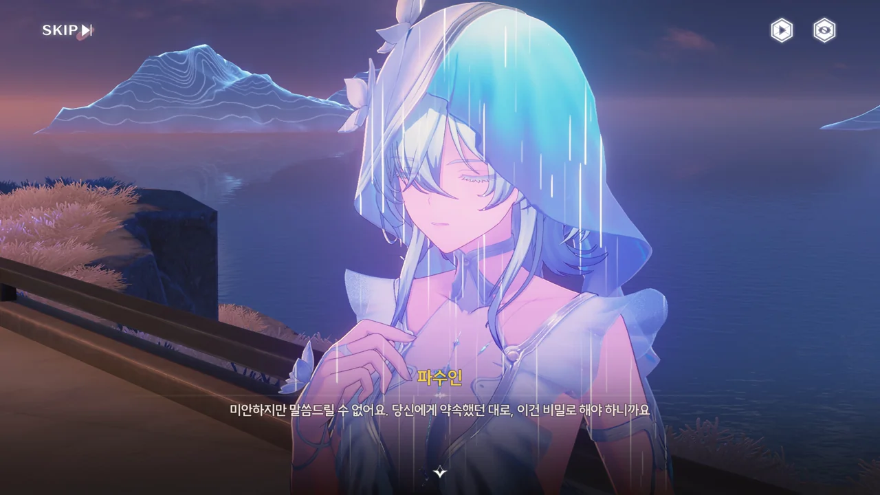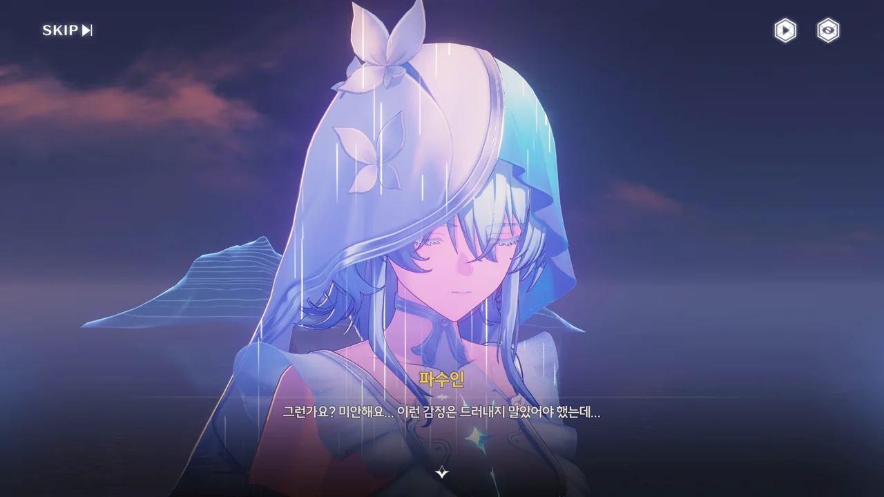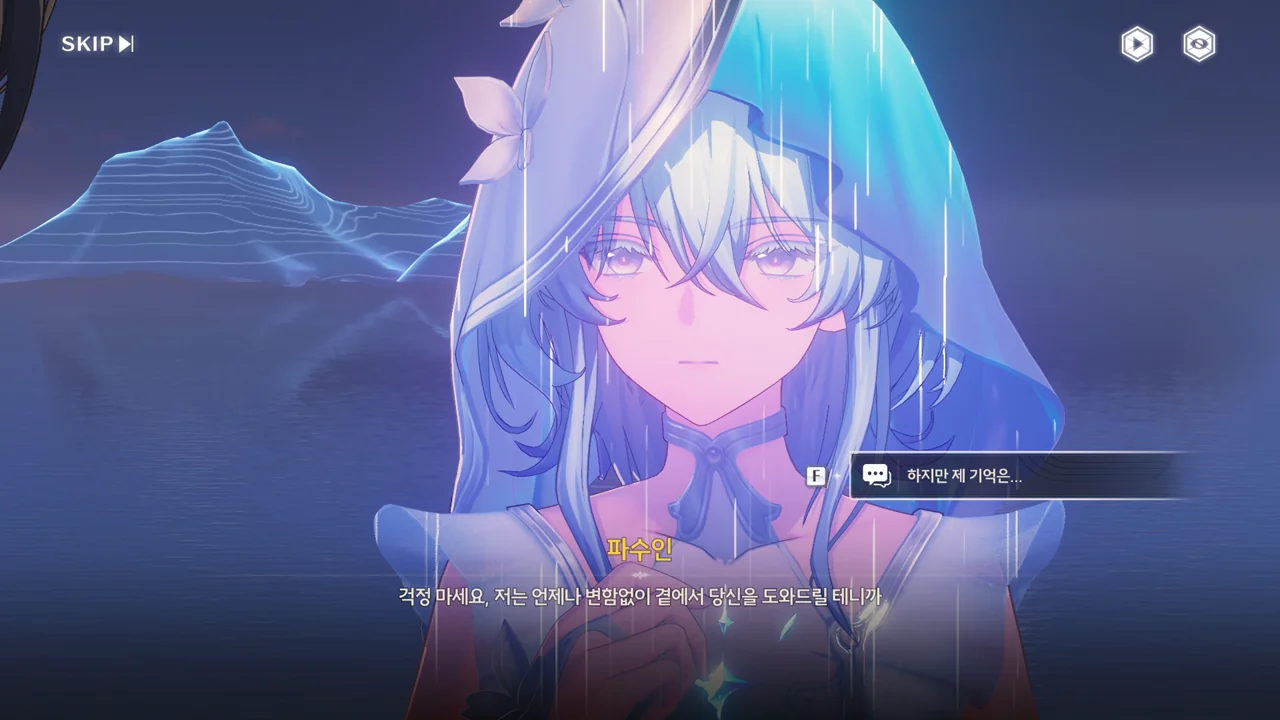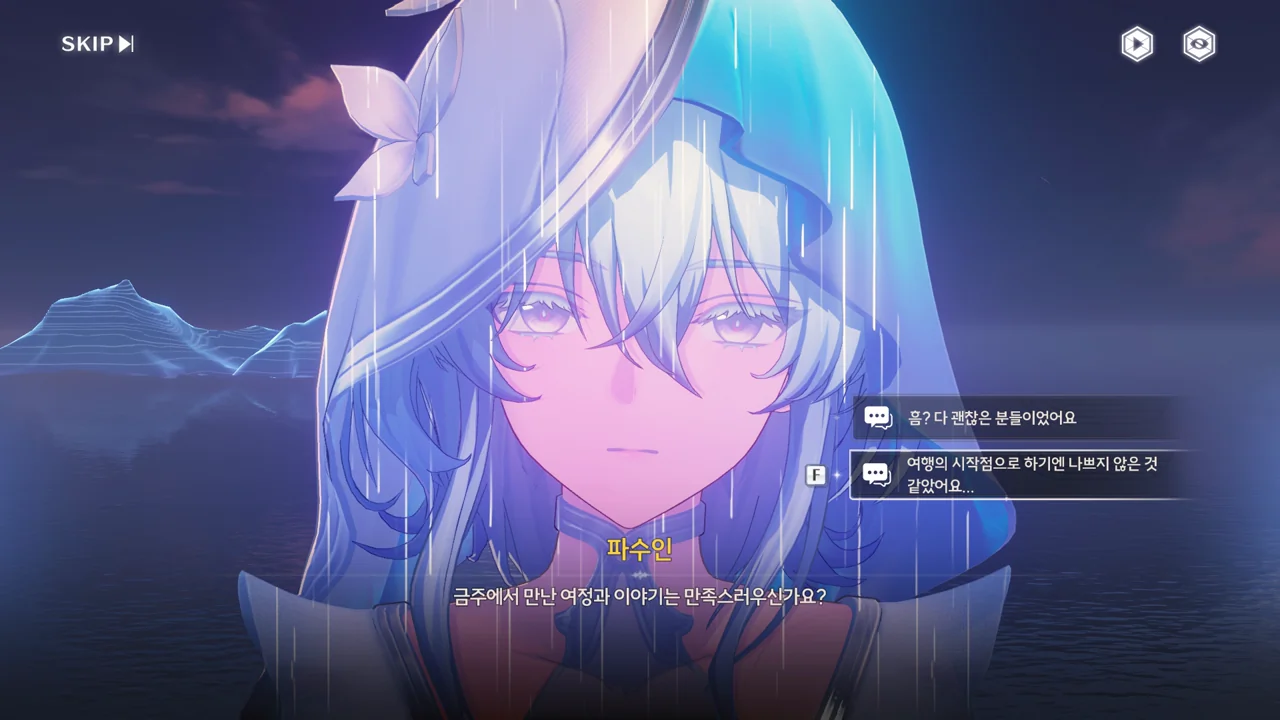 예상했던 대로, 귀허항시에서 방랑자 일행을 구해준 건 파수인이 맞았다. 다만 "제멋대로 행동해서 죄송하다"라고 하는 걸 보면, 원래 해서는 안될 행동이었나 보다. 아마 그 기준은 과거 기억을 잃기 전의 방랑자가 세운 거겠지?