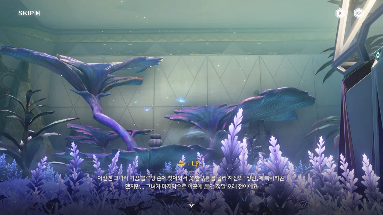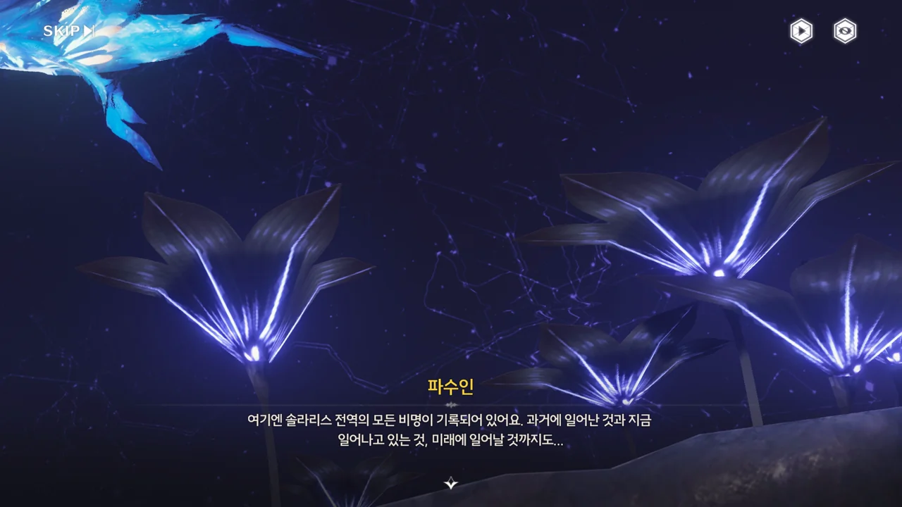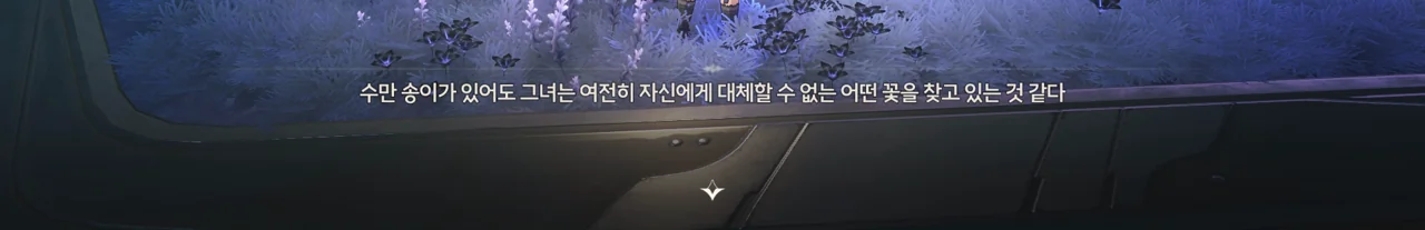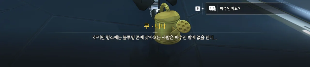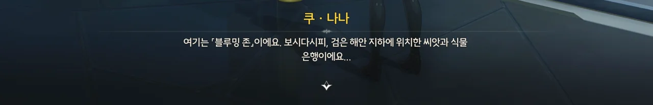 여기는 검은 해안 지하에 위치한, 씨앗 은행 「블루밍 존」이다. 씨앗 은행은 씨앗을 저장할 때 빼곤 들어올 일이 없으니, 여기에 오는 게 파수인 뿐이라는 게 이해가 되지 않는 건 아니다.
