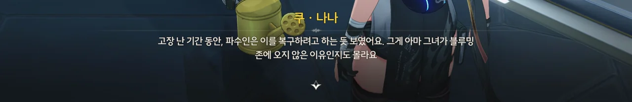방랑자가 없을 동안 파수인이 데이터 센터를 복구하려 한 모양인데, 쿠 나나가 저렇게 말하는 걸 봐선 실패한 것 같네.