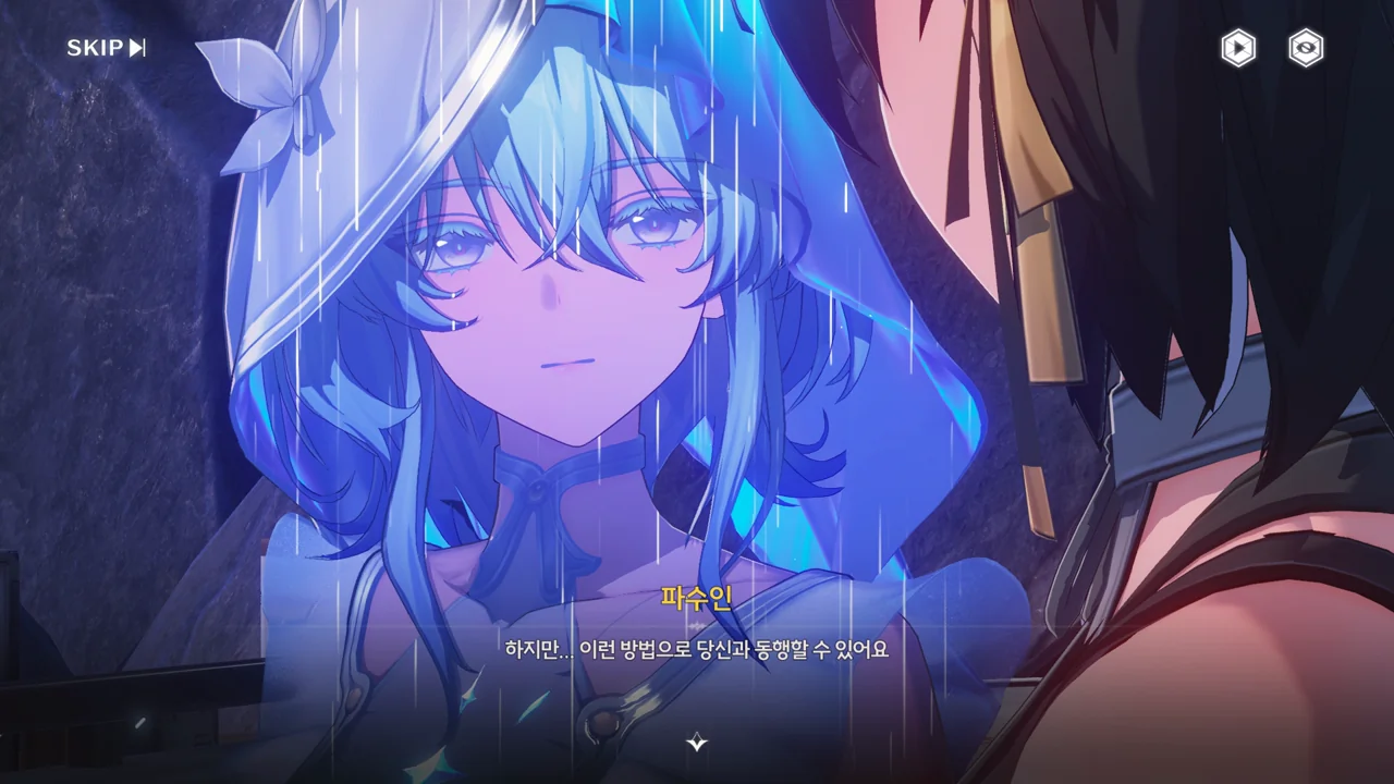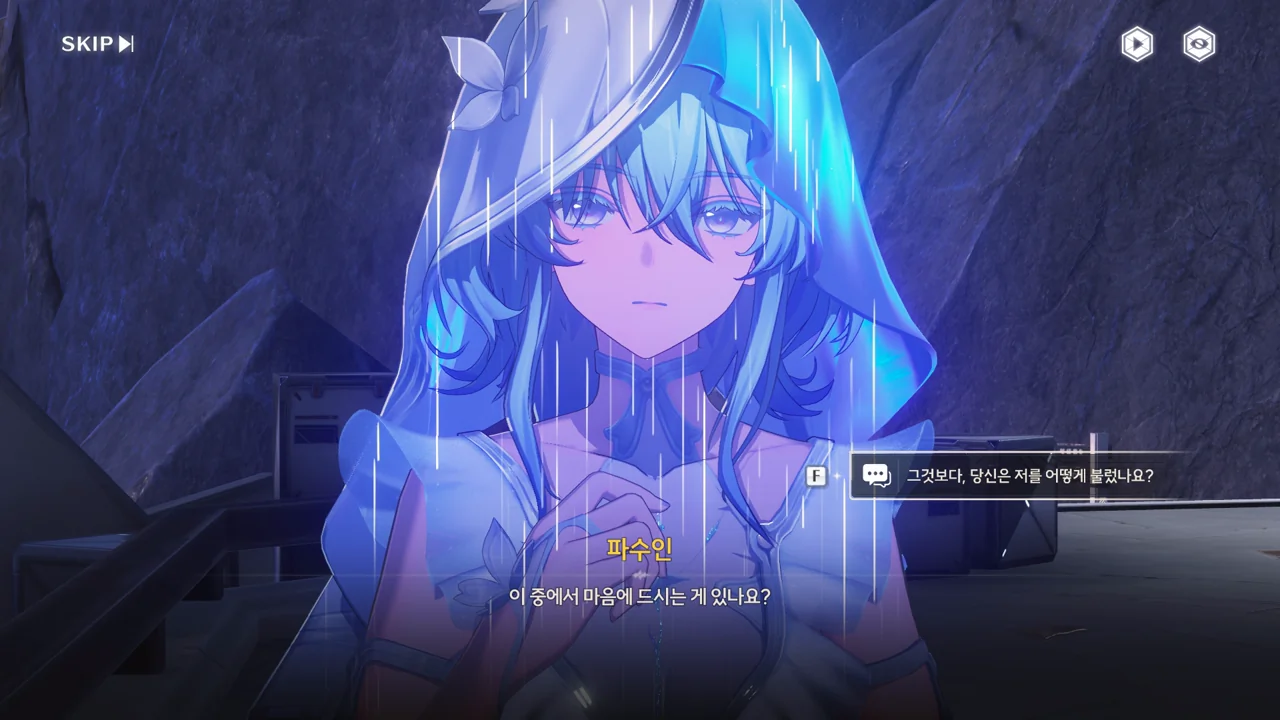 파수인은 귀허항시에서 방랑자가 위험에 처하자, 과거 방랑자가 내린 지시를 어기면서까지 방랑자를 구할 정도로 방랑자를 매우 특별히 생각하고 있다.