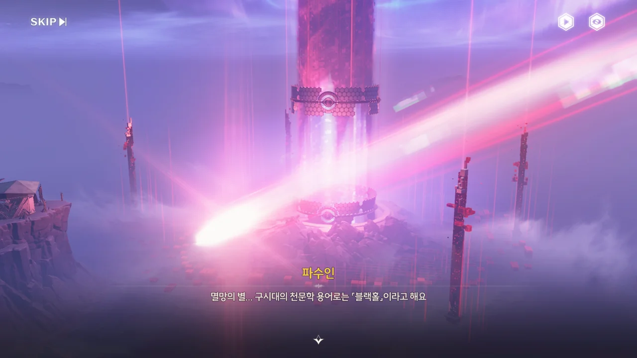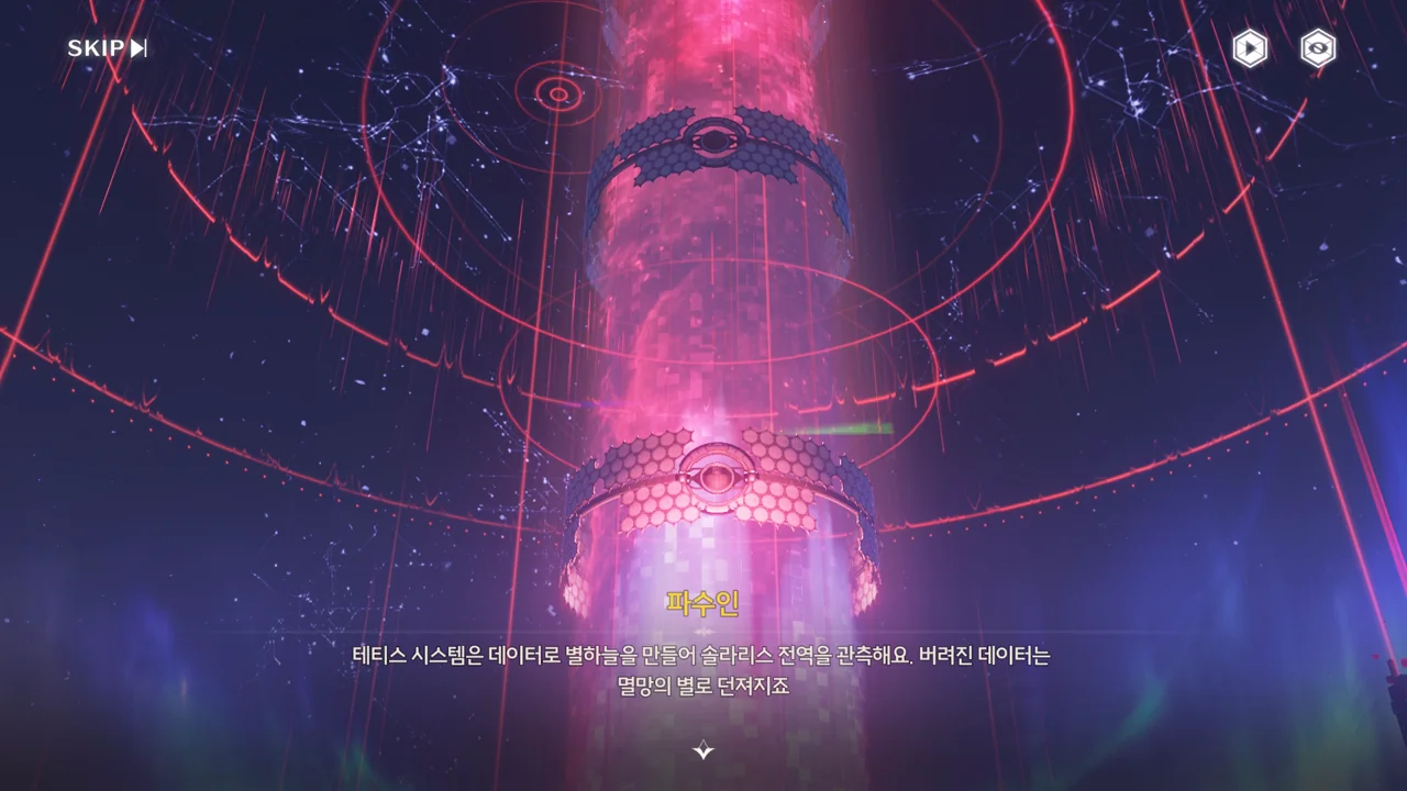 여기 보이는 별하늘은 진짜 별하늘이 아니라, 솔라리스의 과거, 현재, 미래의 비명을 별하늘의 형태로 기록한 것이라고 한다. '오르디'가 방랑자를 '뭇별의 조율자'라고 부르던데, 그게 이 별하늘과 관련이 있는 걸까?