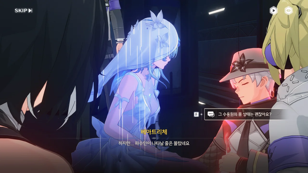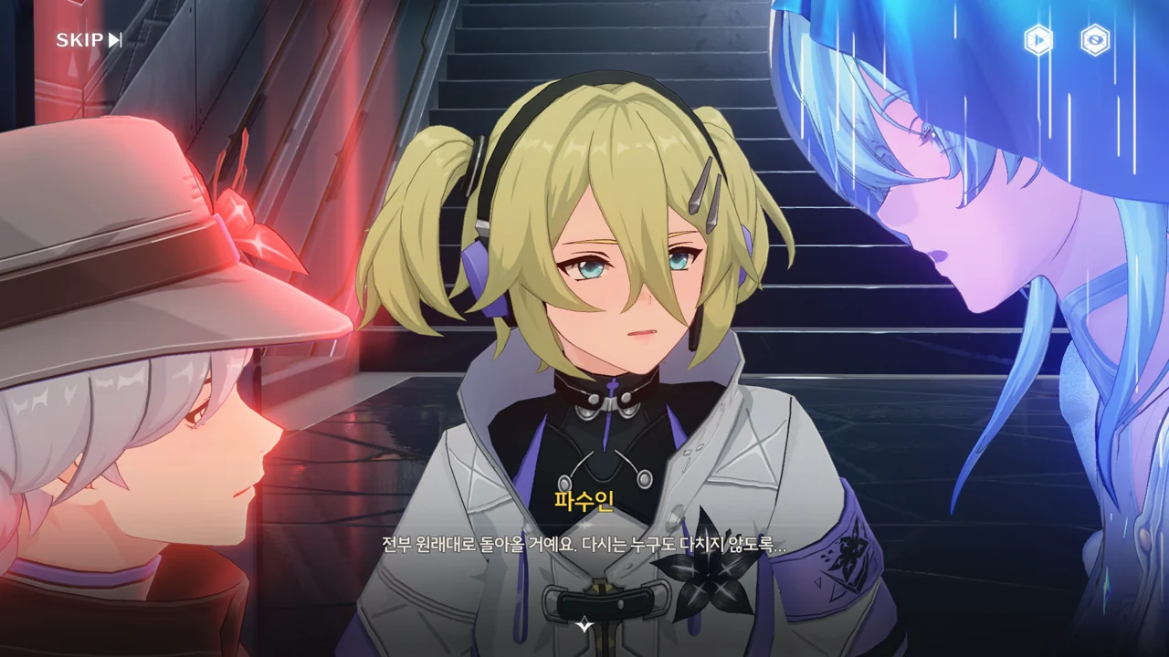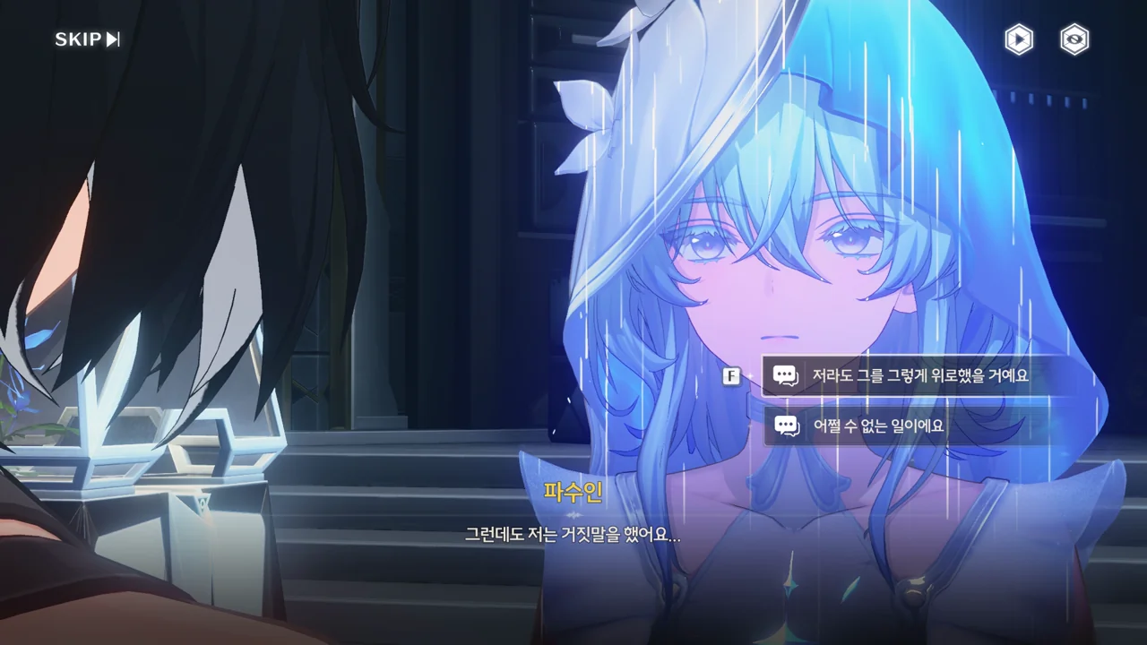 아마 아까 보았던 두 대사는 여기 나왔어야 할 대사가 오류로 인해 먼저 나온 것으로 보인다.