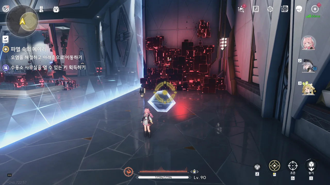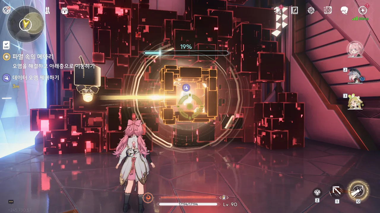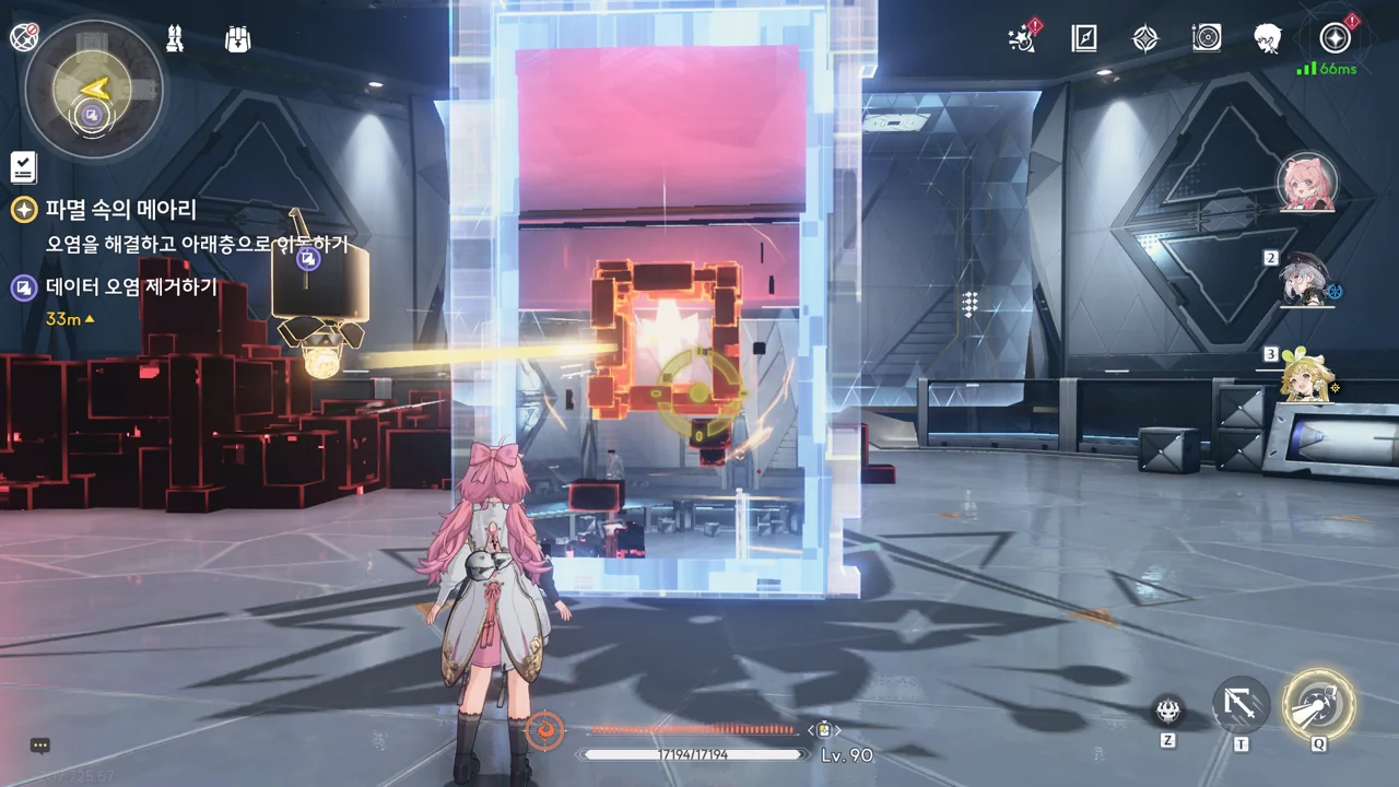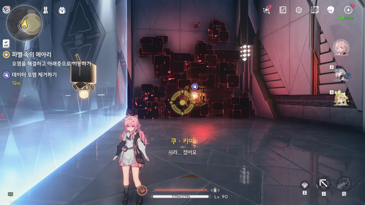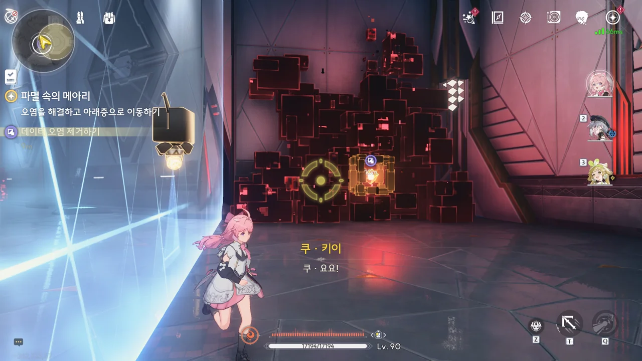 「쿠 · 요요」가 바깥에 있던 데이터 오염을 장벽 안으로 전송시켜 준 덕분에 오염을 제거하고 나갈 수 있었다.