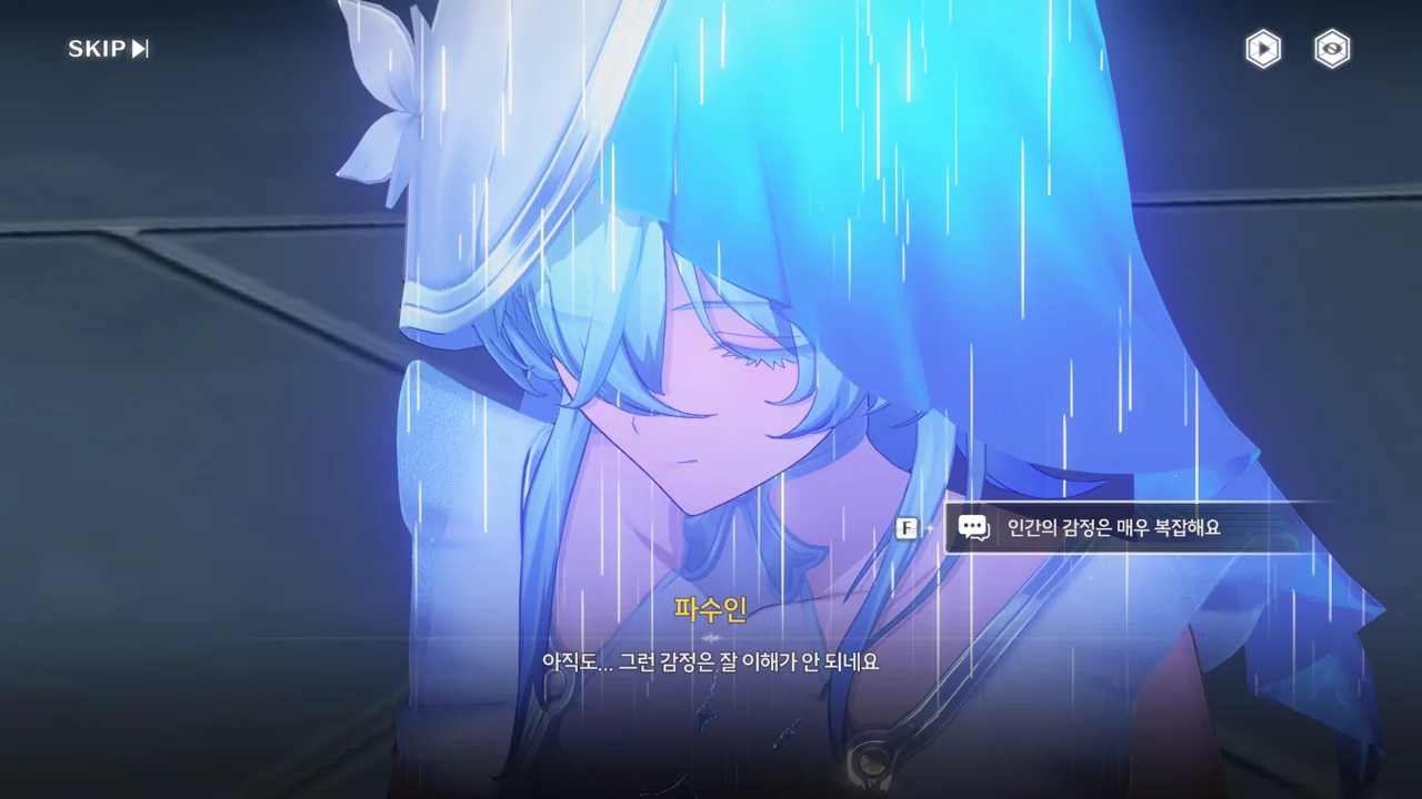 글쎄… 난 저게 파수인이 사람의 감정을 학습하는 거라고 생각하는데. 늘 무표정이던 파수인에게도 따뜻한 심장이 있다는 증거겠지, 아마.