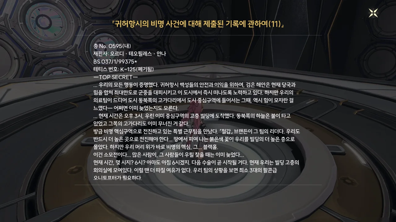 멸망의 별을 회수한 자리에는 오르디가 마지막으로 작성한 것으로 보이는 보고서가 놓여 있다.