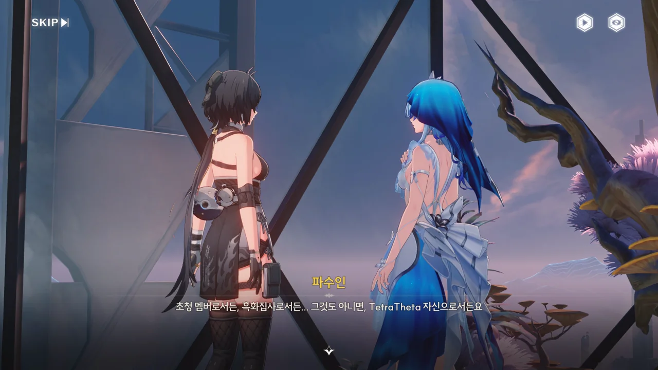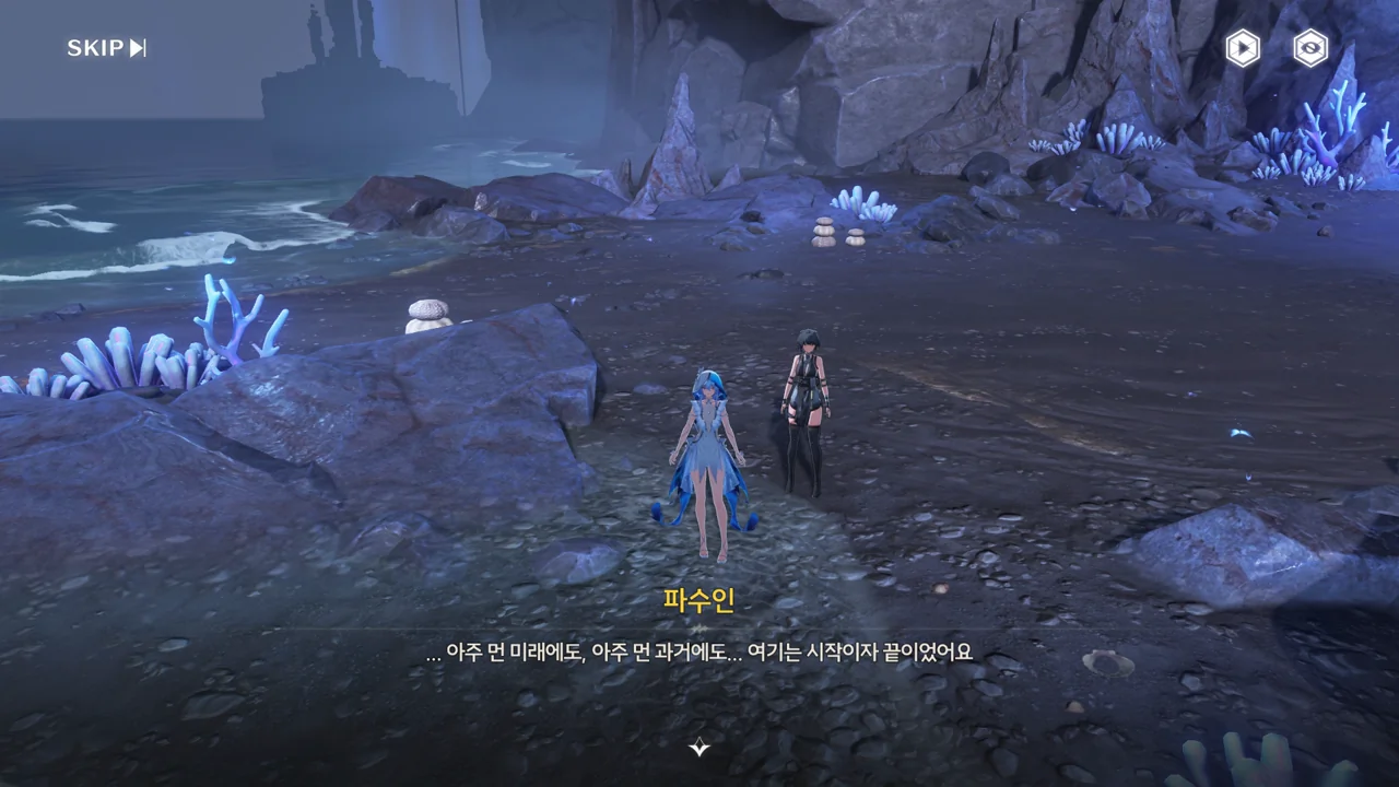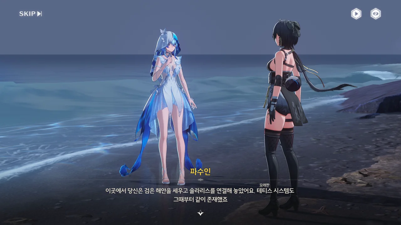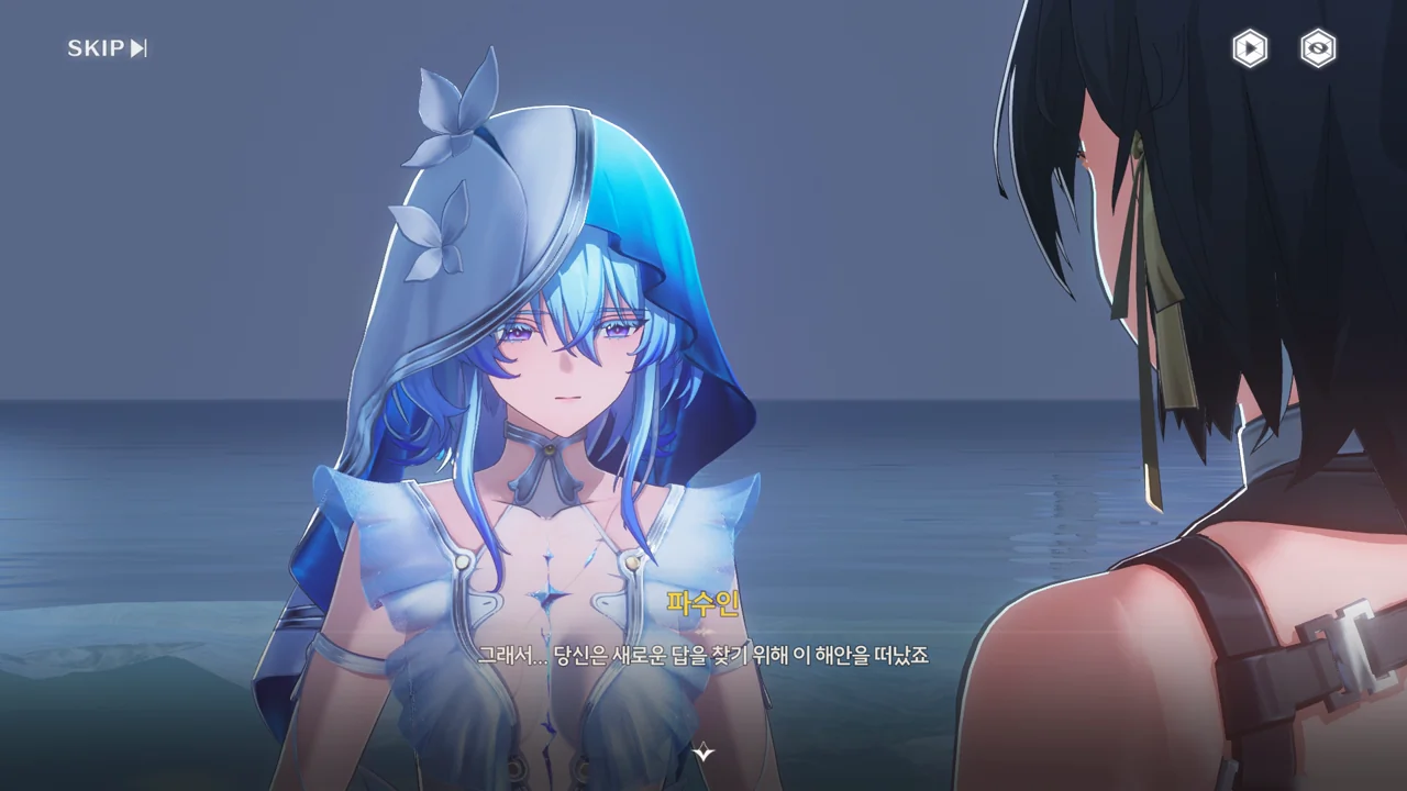 파수인 당신은… 여기 계시면 안 돼요. 한번 테티스 시스템의 일부가 되면 돌이킬 수 없어요… 방랑자 그런 일은 없을 거예요. 테티스 시스템과 검은 해안에는 새 길이 생길 테니까. 방랑자 그건 그렇고, 누군가 거짓말을 했던데… 맞죠?