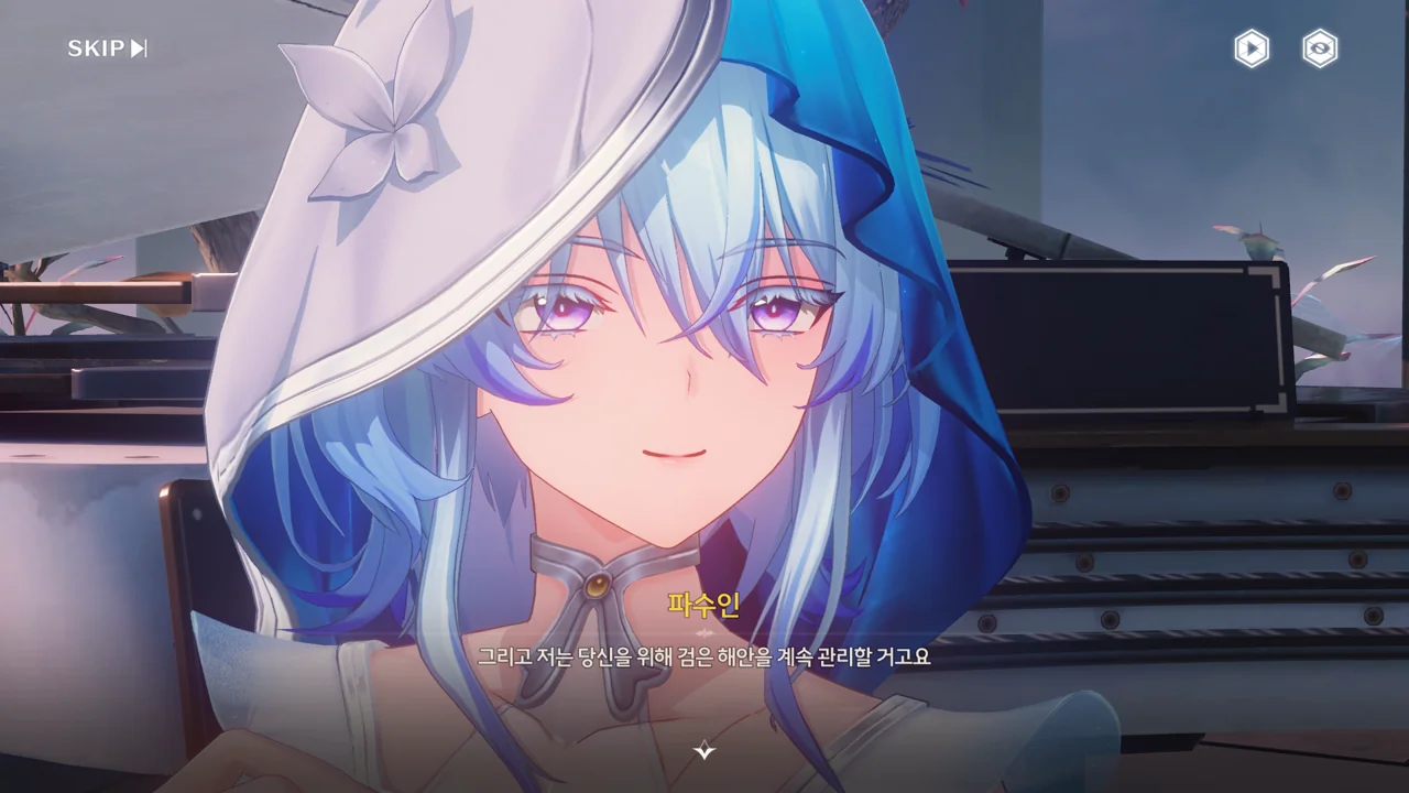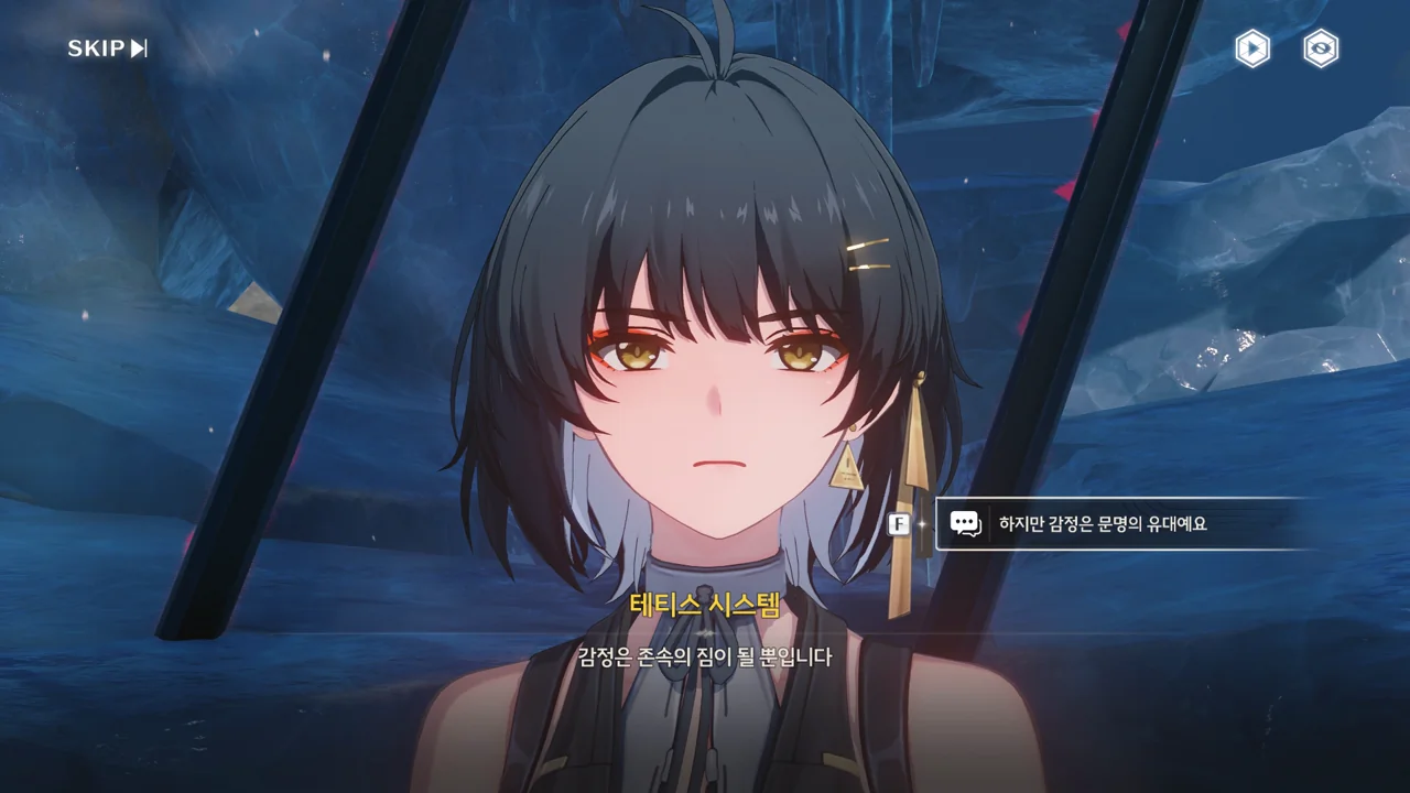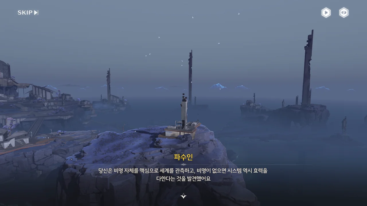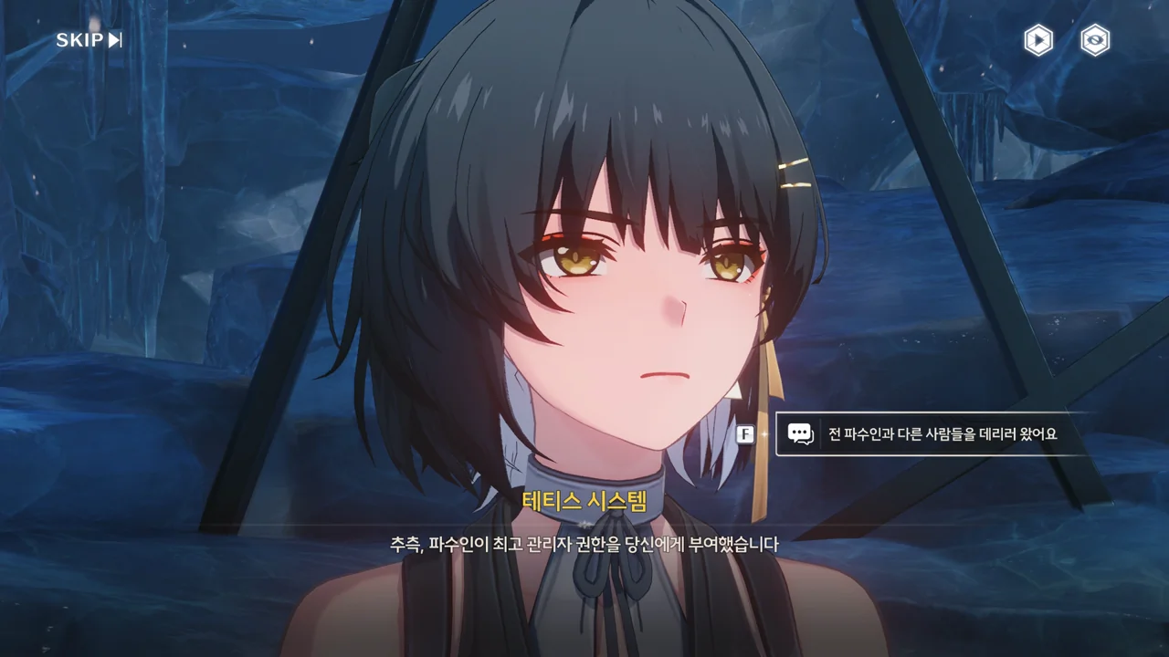 파수인 당신은… 여기 계시면 안 돼요. 한번 테티스 시스템의 일부가 되면 돌이킬 수 없어요… 방랑자 그런 일은 없을 거예요. 테티스 시스템과 검은 해안에는 새 길이 생길 테니까. 방랑자 그건 그렇고, 누군가 거짓말을 했던데… 맞죠?