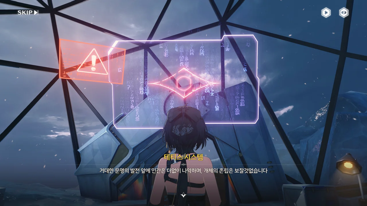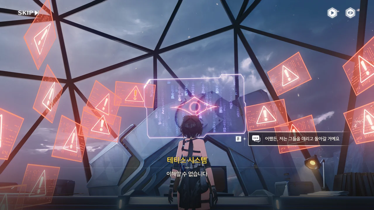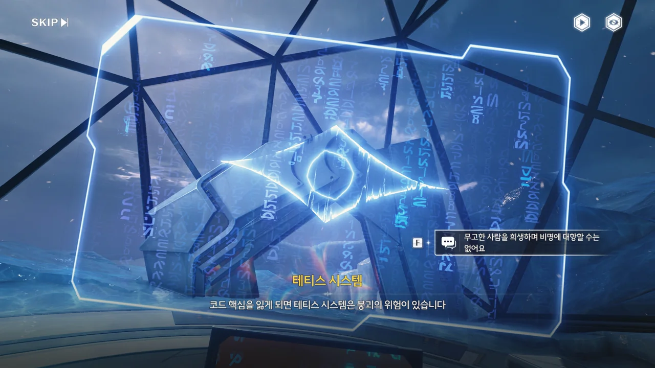 테티스 시스템이 방랑자에게 이대로 파수인 방출을 계속할 경우, 멸망한 미래 모습을 송출하겠다고 협박한다. 그게 협박이 되긴 하는 건가?