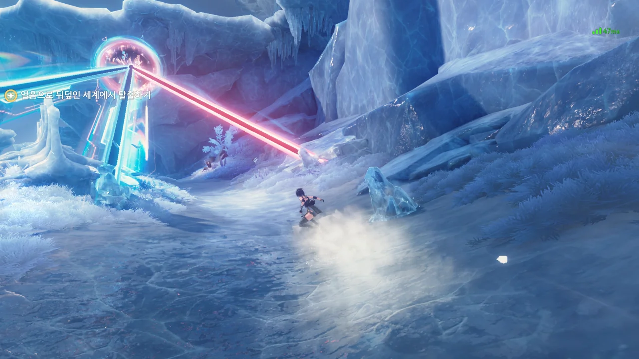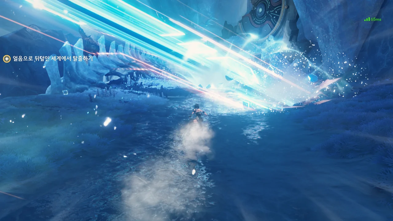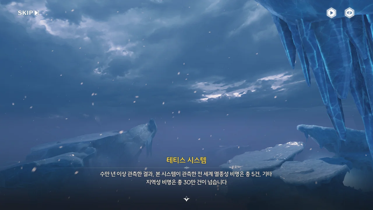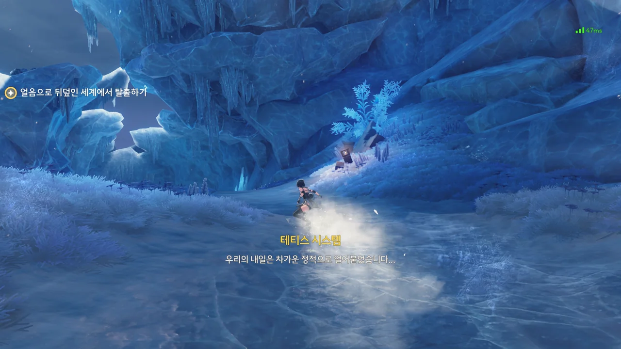 테티스 시스템이 방랑자 발 밑에 구멍을 뚫어, 꽁꽁 얼어붙은 세상 속으로 떨어트린다.