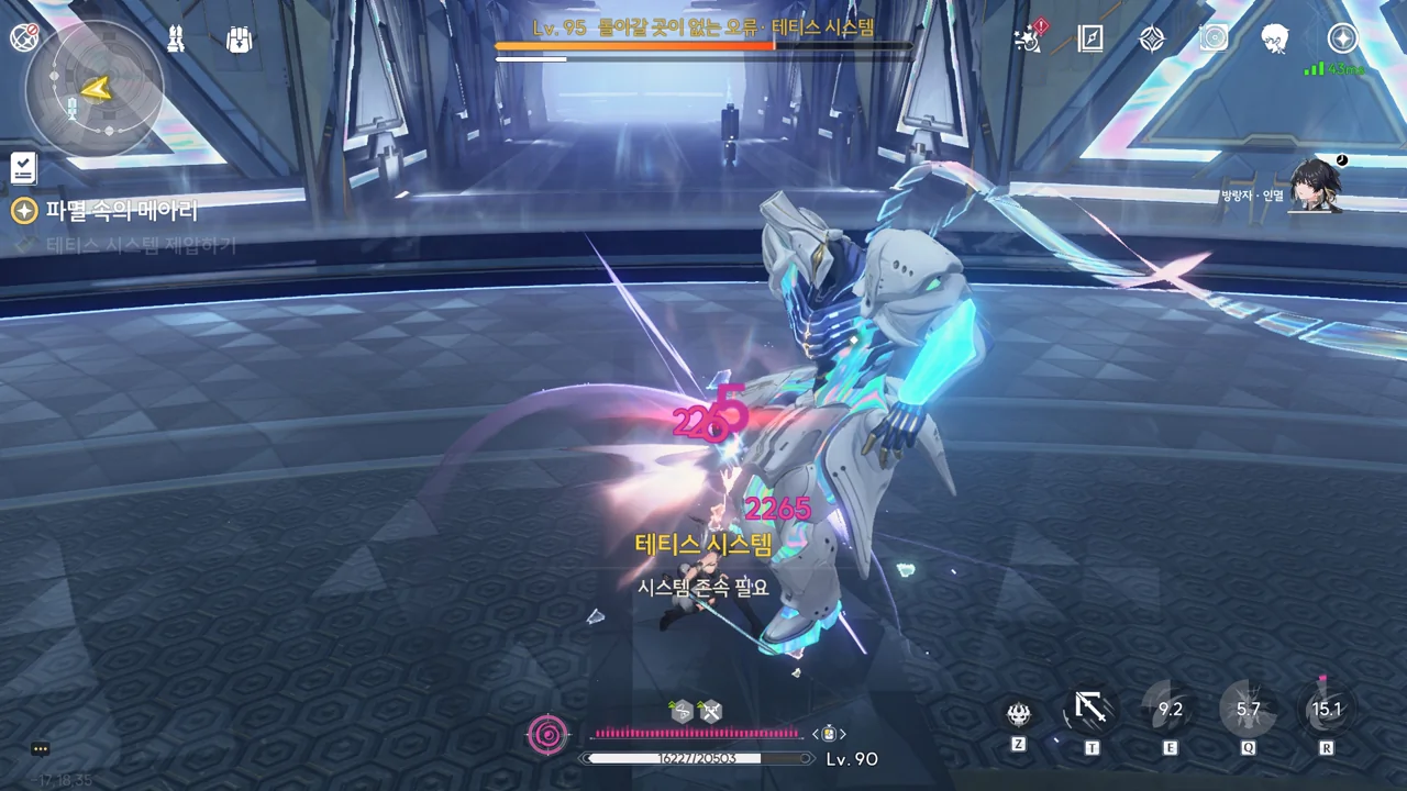 이젠 방랑자 앞에 잔상을 소환해 길을 막는 테티스 시스템. 하지만 파수인의 조력 덕분에 잔상들을 삭제하며 나아갈 수 있었다.