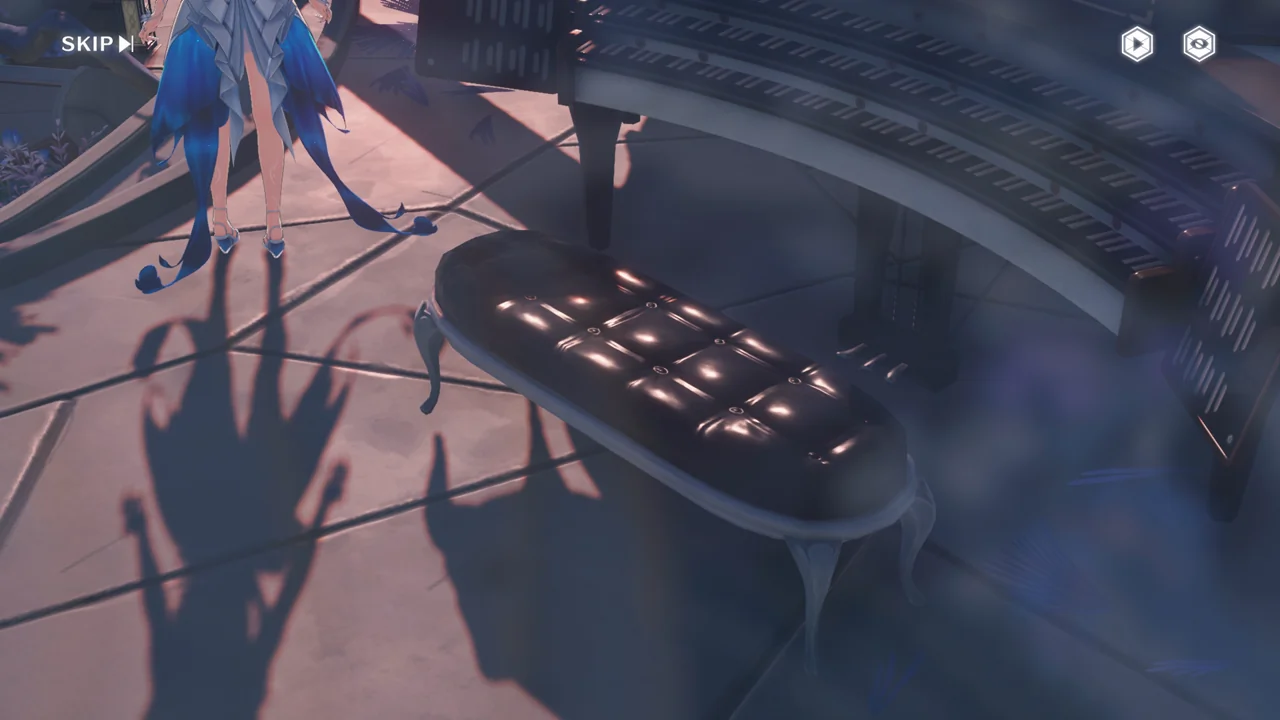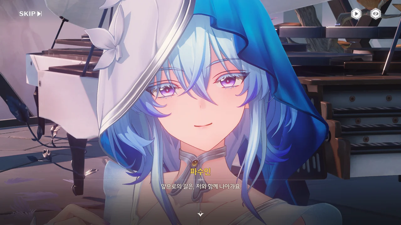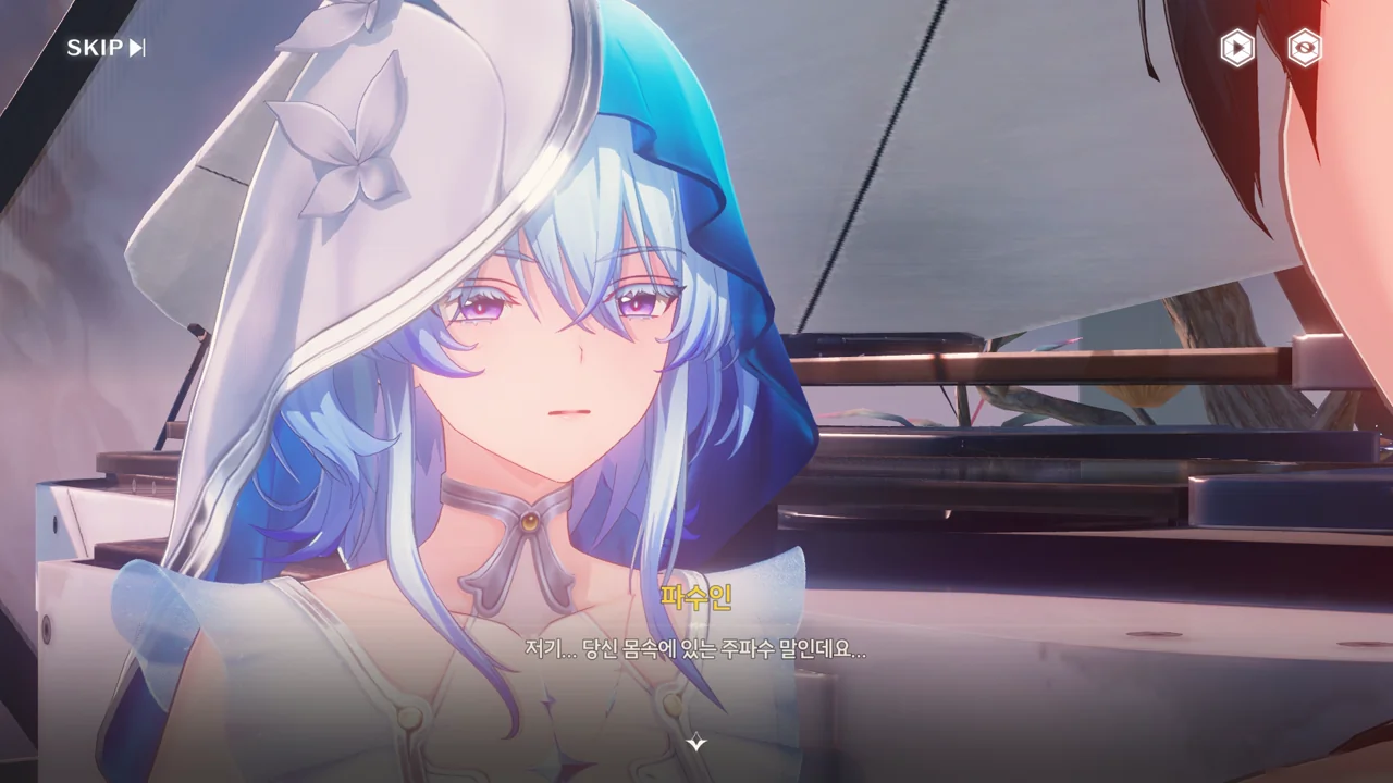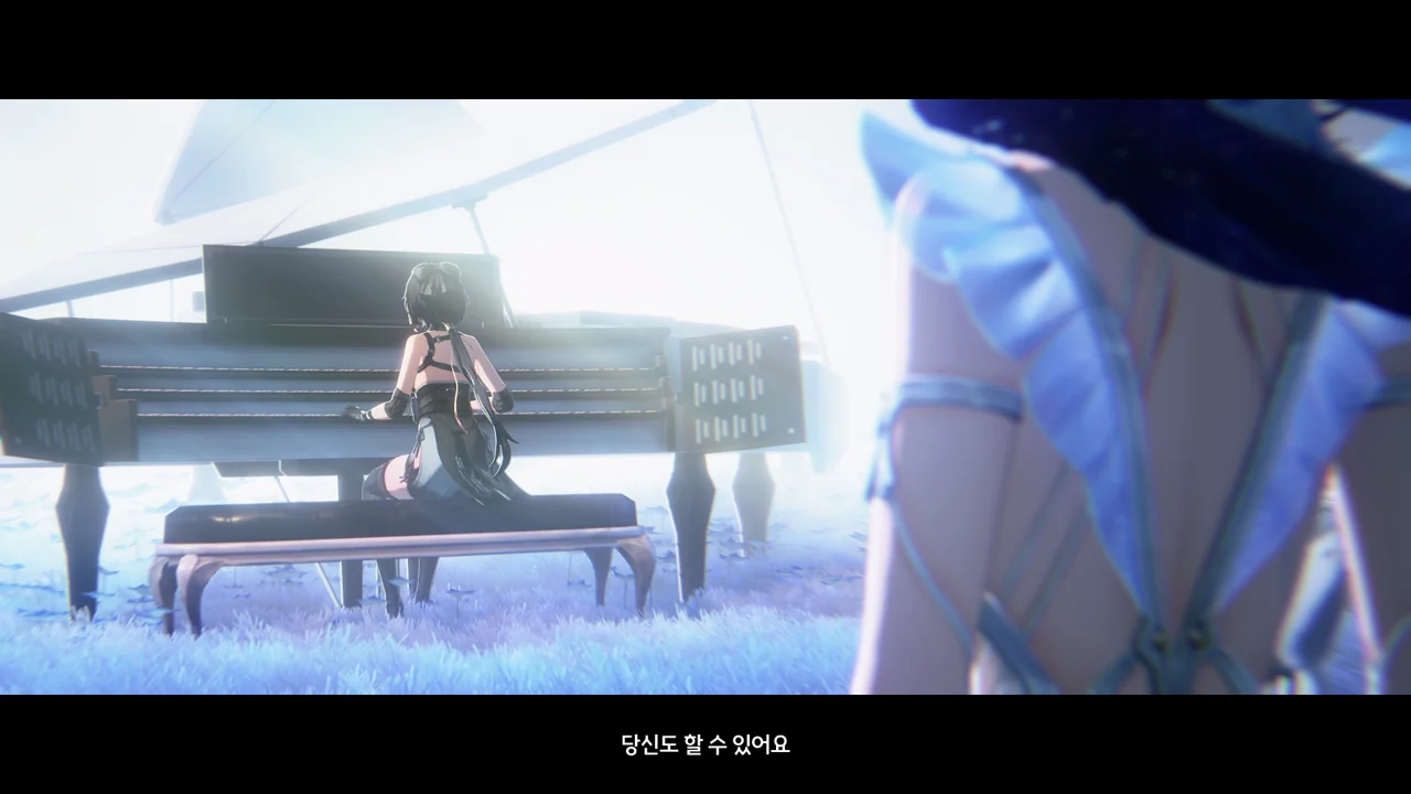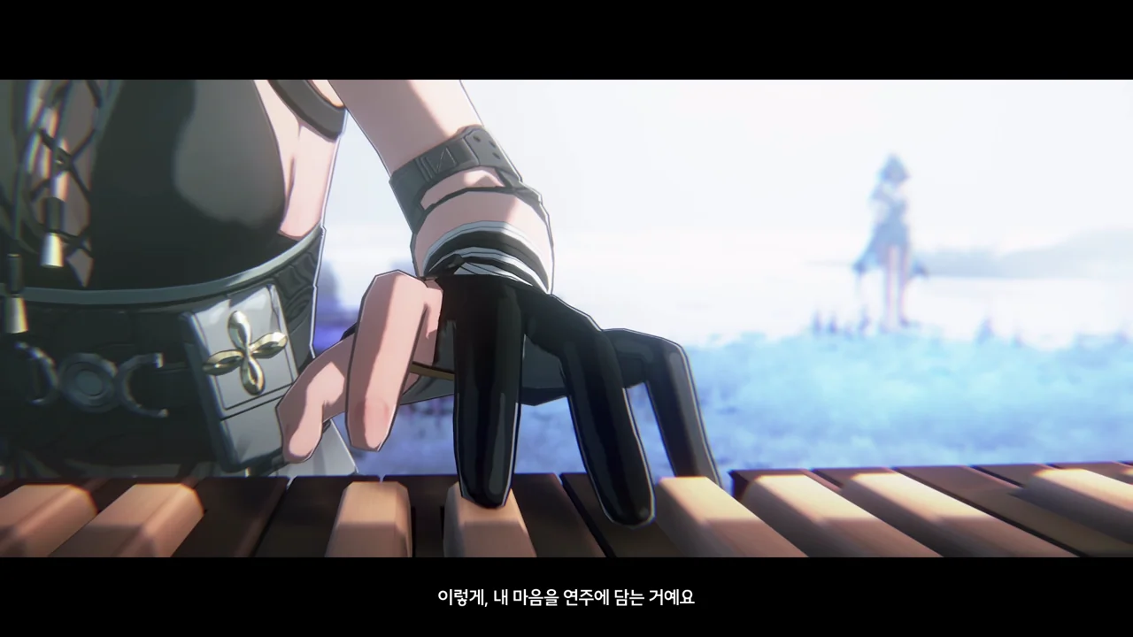 과거의 방랑자가 처음 파수인에게 피아노 연주법을 알려줄 때의 장면인 듯, 방랑자가 자신의 옆자리를 툭툭 치며 파수인에게 한번 피아노를 쳐보라고 권유한다.
