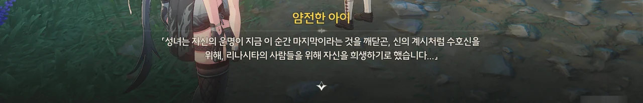 성녀가 흑조를 막기 위해 자신을 희생한 장면을 묘사한 것으로 보인다.