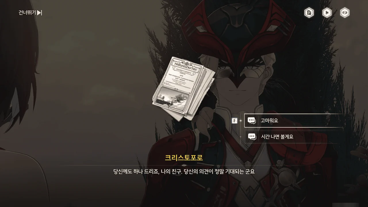 크리스토포로가 시나리오 대본을 주긴 했는데, 지금 당장은 볼 생각이 없다.