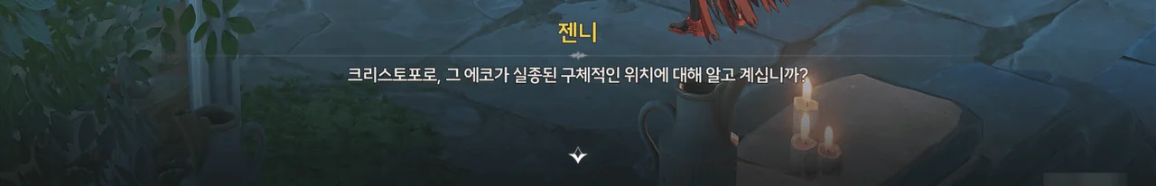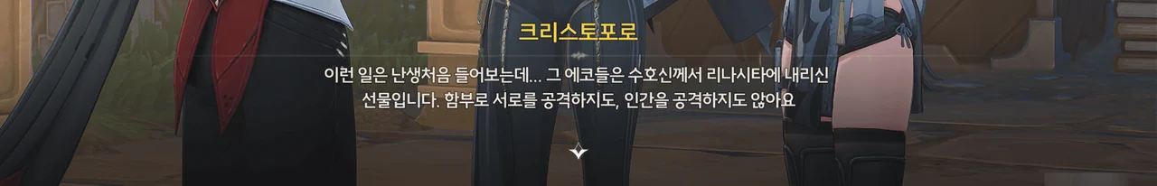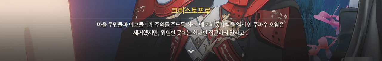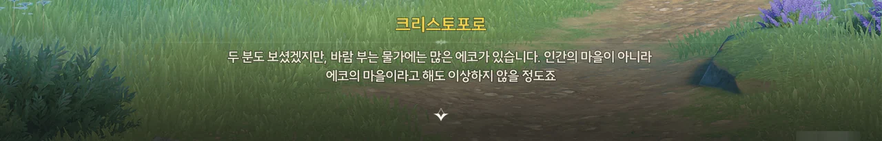 방랑자가 라군나성과 폐허에서 에코들에게 습격당한 일을 크리스토포로에게 알려주자, 공공 에코는 수호신이 리나시타에 내린 선물이기에 함부로 인간을 공격하지 않는다며 믿기 어려워한다.