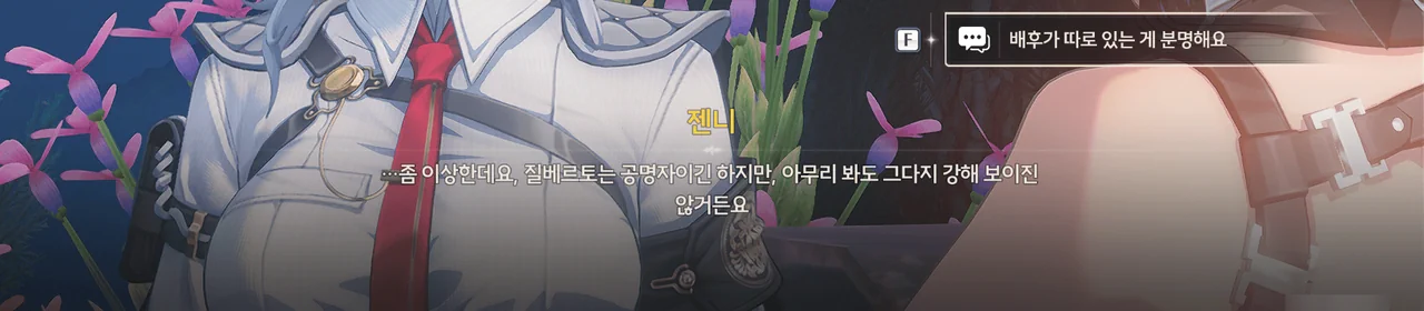 강력한 공명자가 아닌 질베트로가 에코를 조종할 수 있었던 건 순전히 플로로가 건네준 피안화 덕분이었던 것으로 보인다.