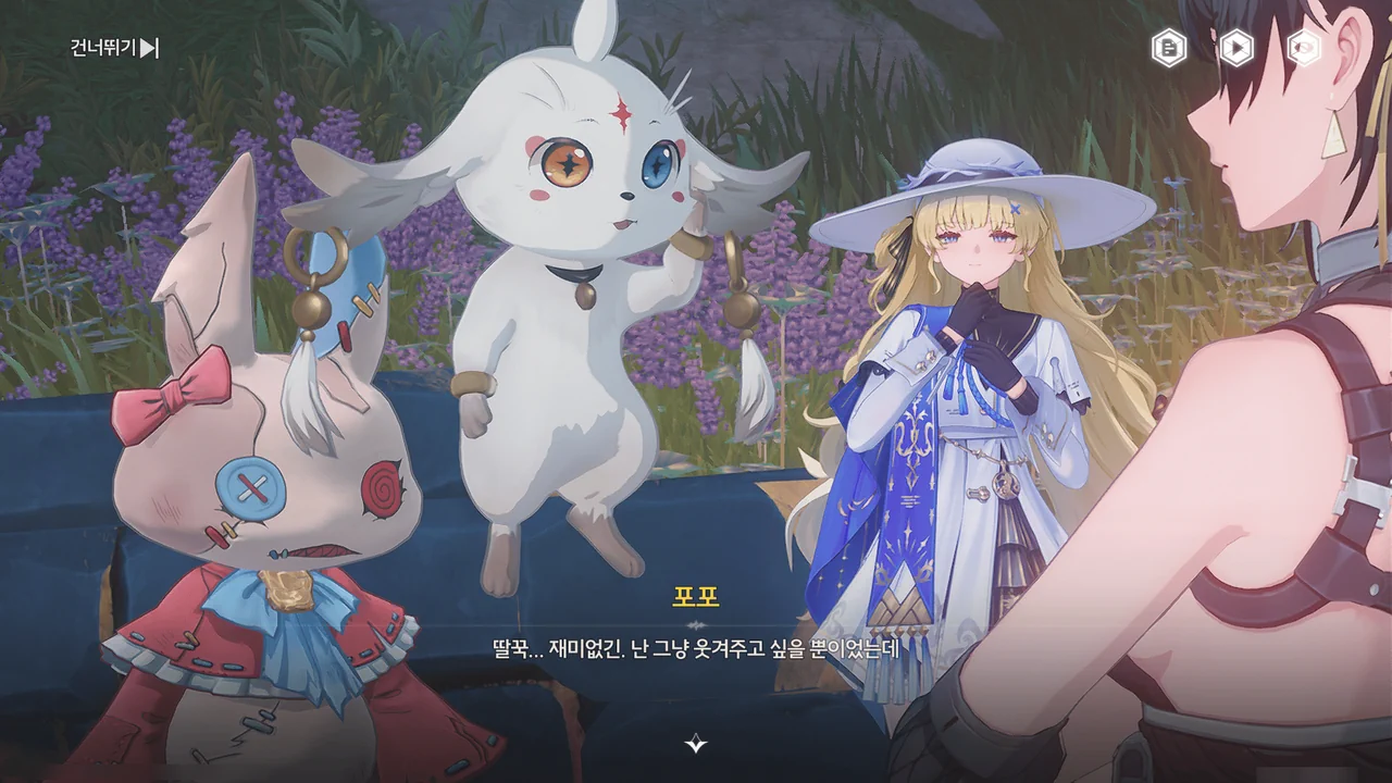 포포가 페비의 등 뒤에 몰래 다가가 쿡쿡 찌르는, 실없는 장난을 친다.