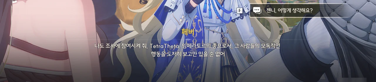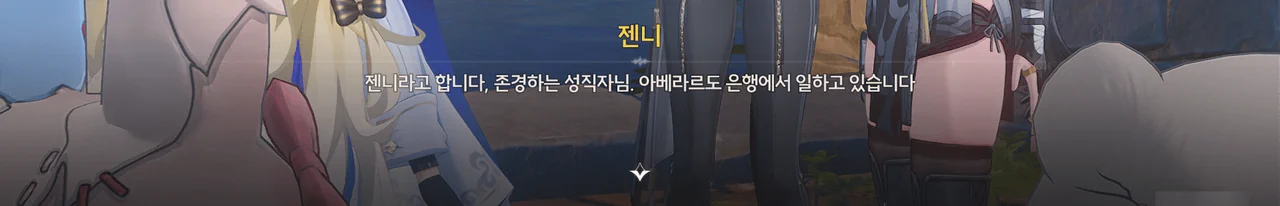 젠니 젠니라고 합니다, 존경하는 성직자님. 아베라르도 은행에서 일하고 있습니다. 페비 … 처음 보는 얼굴인데. 젠니 아… 그건 제가 성당에 잘 나가지 않아서… 지, 지금은 그보다 상당히 시급한 일이 있습니다.