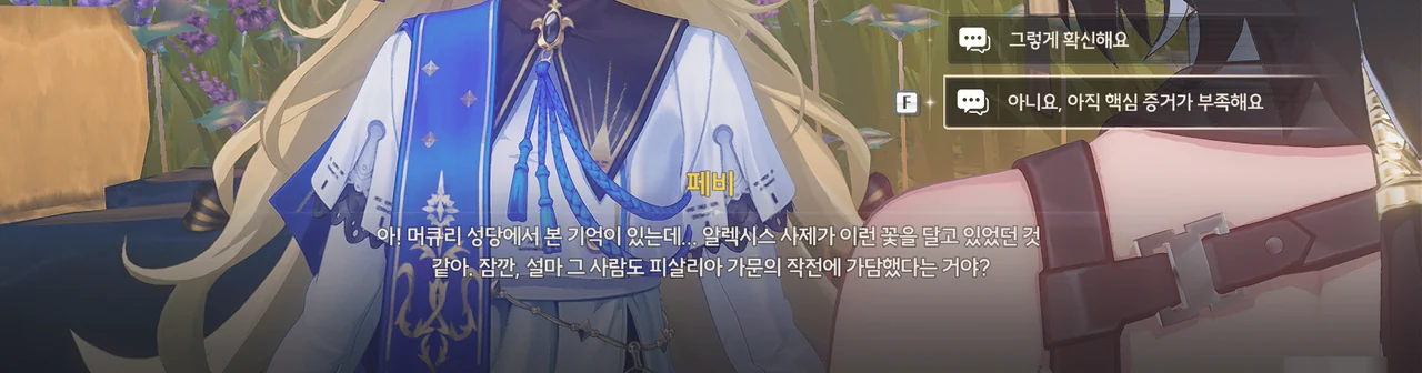 알렉시스 사제가 평소에 저 피안화를 옷에 달고 다녔다고? 대체 무슨 생각인 거지?