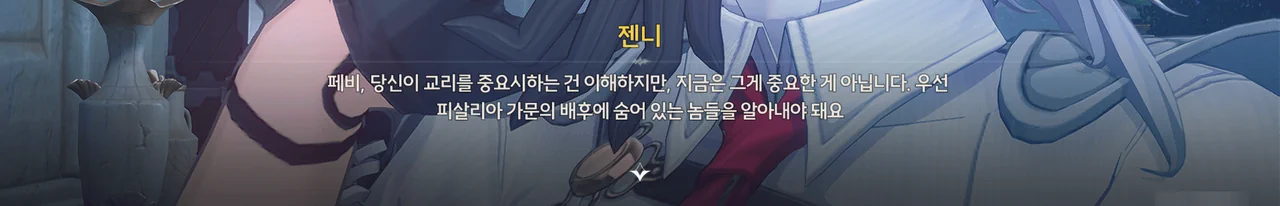페비에게 최근 있었던 에코 실종 및 폭주 사건의 용의자가 피살리아 가문의 질베르토임을 알려주자, 평소 수호신을 아주 경건하게 여기던 피살리아 가문의 사람이 수호신이 하사한 에코를 모욕할 리 없다며 믿기 어려워한다.
