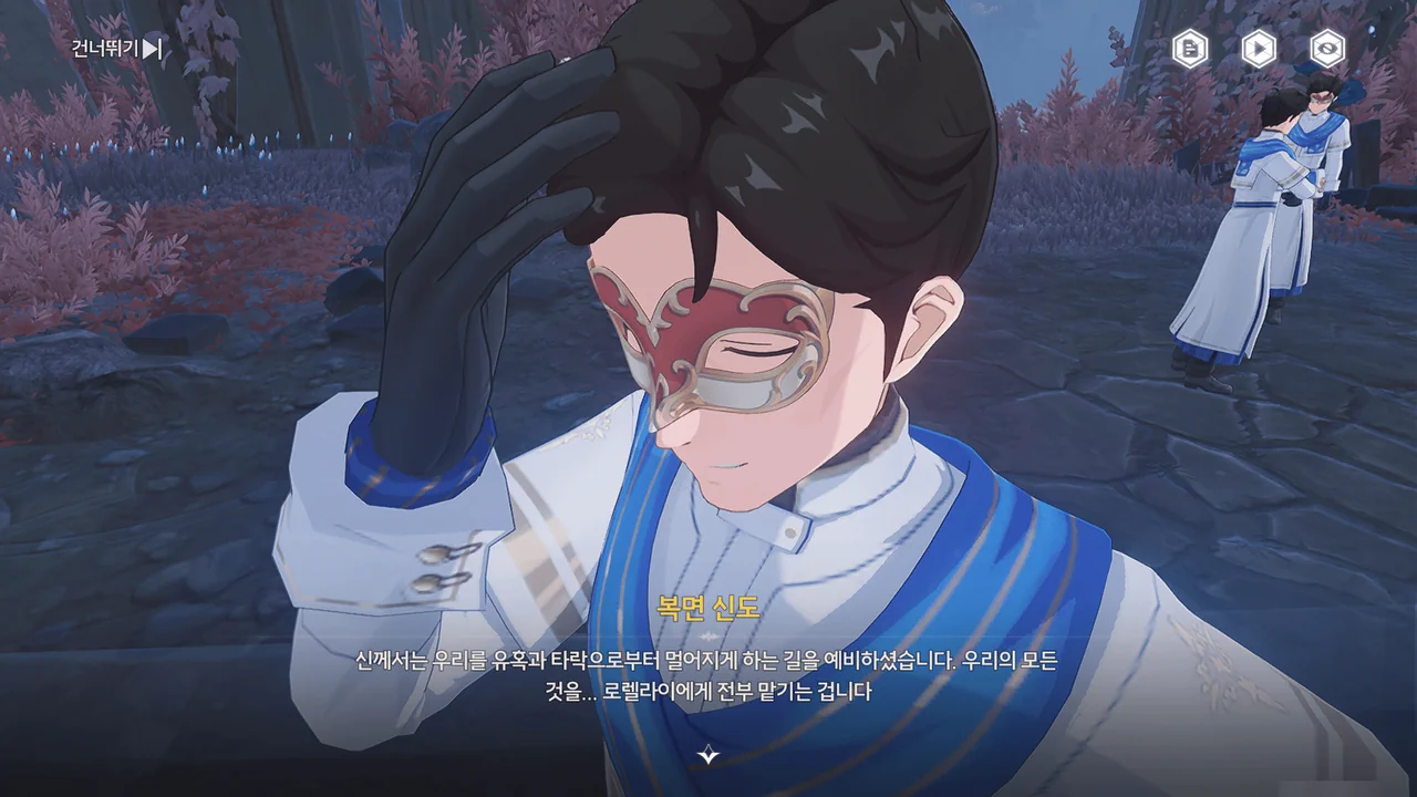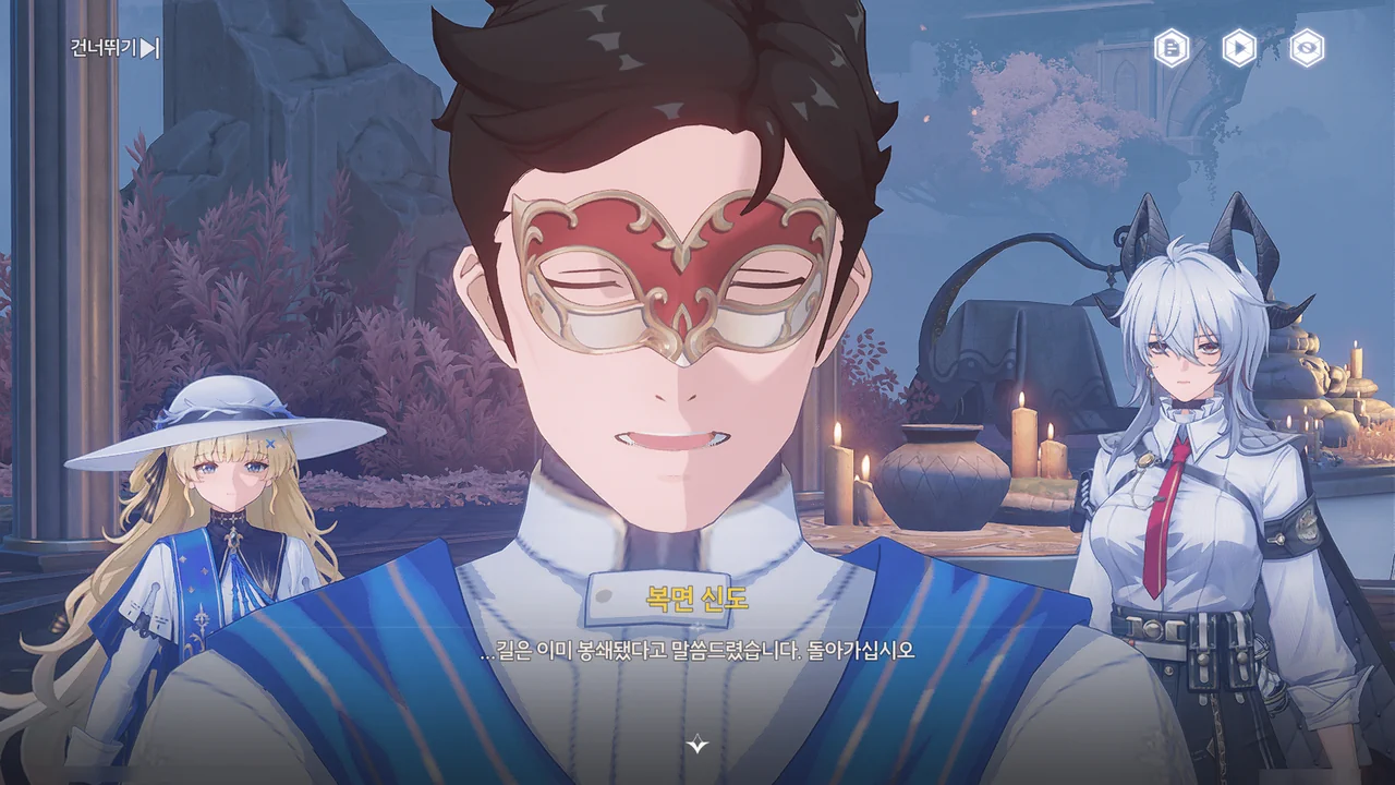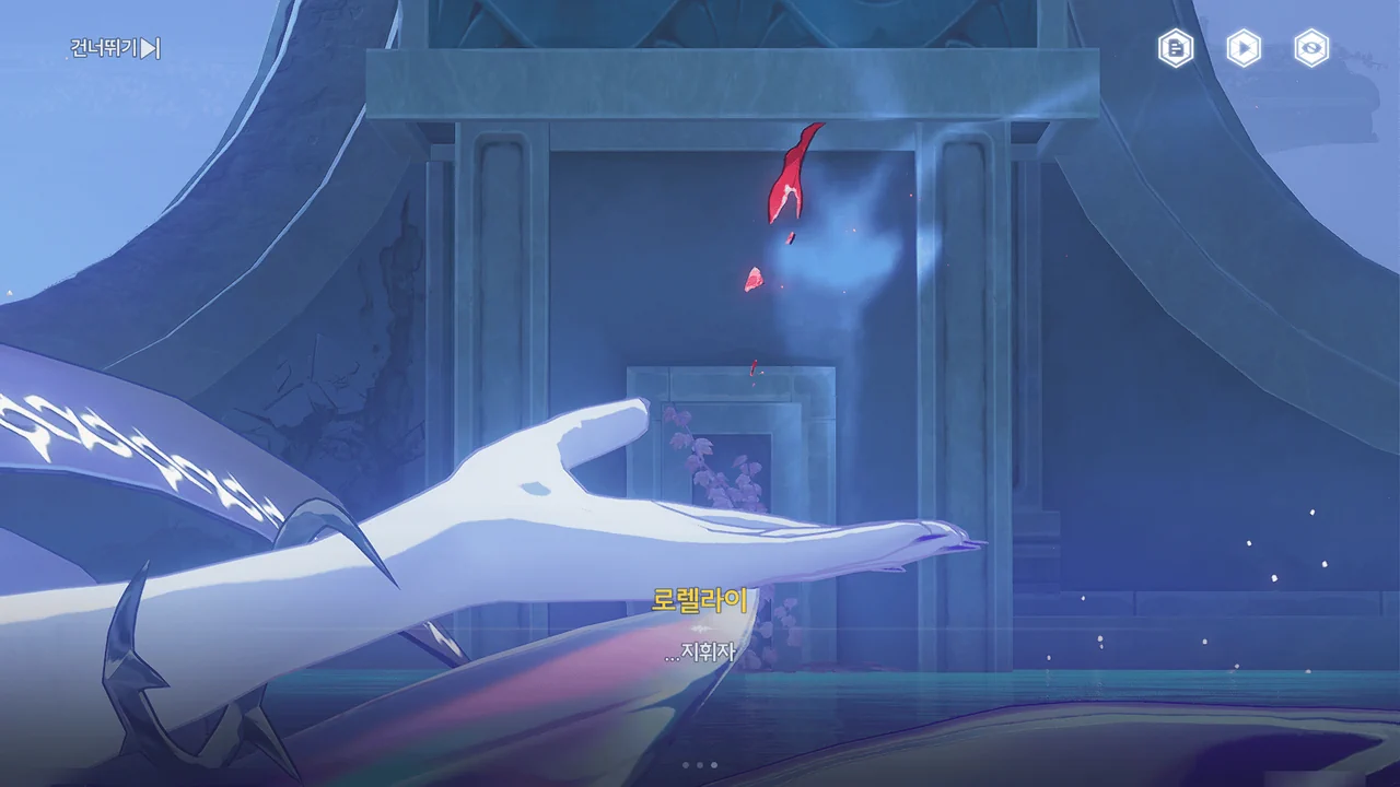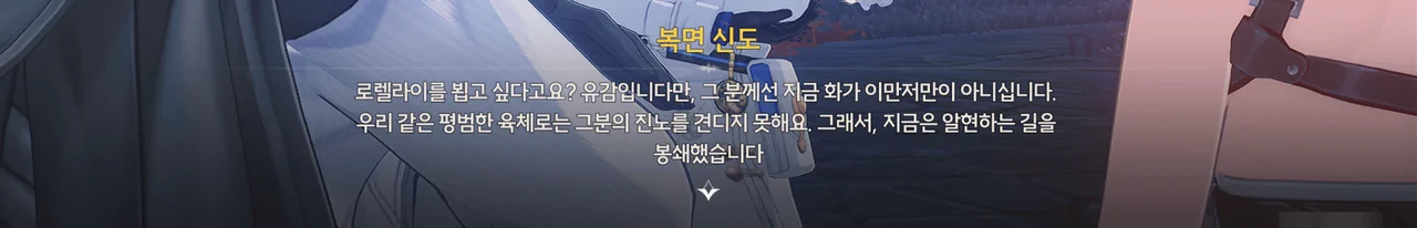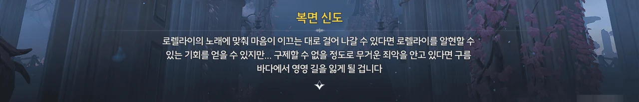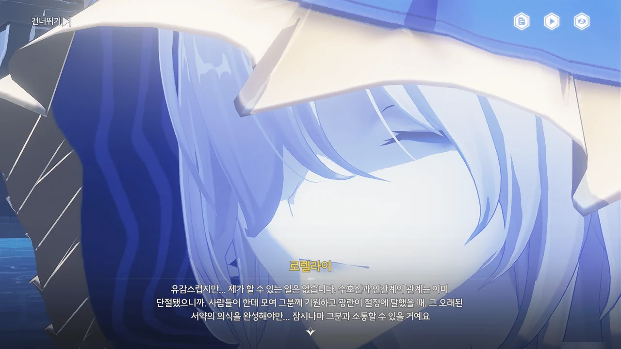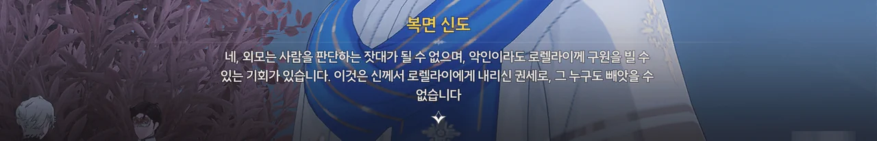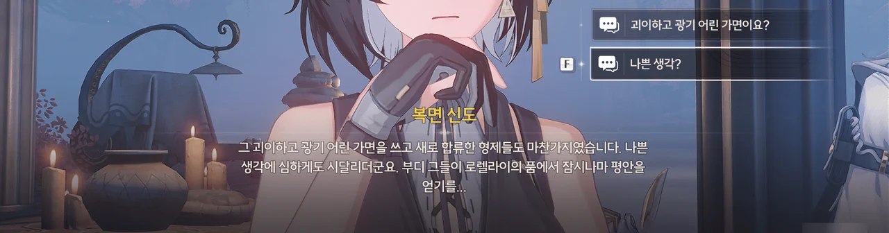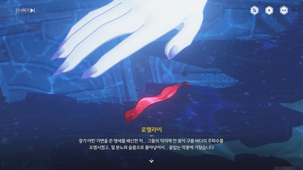 정황상 아까 그 광신도가 말한 "괴이하고 광기 어린 가면"을 쓴 사람들이 로렐라이에게 피안화를 붙여 폭주시킨 모양이다.