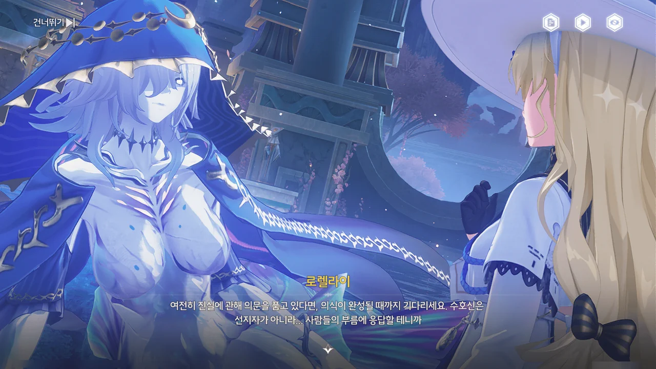 로렐라이가 알려준, 수호신과 소통하는 유일한 방법은 카니발에서 "오래된 서약의 의식"을 완성하는 것뿐이라고 한다.