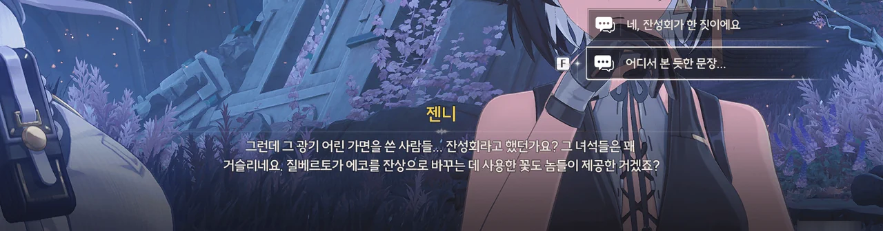 방랑자와 젠니가 에코의 말을 이해하지 못하는 걸 보면, 페비 역시 비슷한 상황이라 생각할 수 있지만, 아무리 그래도 그렇지, 이건 '척하면 척" 정도가 아니잖아…