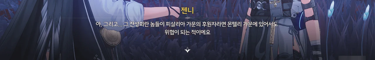 마침 경매 때문에 몬텔리 가문의 고위층 모두가 아베라르도 금고에 모일 예정이라, 젠니와 방랑자는 아베라르도 금고에 가 피살리아 가문 뒤에 잔성회가 암약하고 있음을 보고하기로 했다.