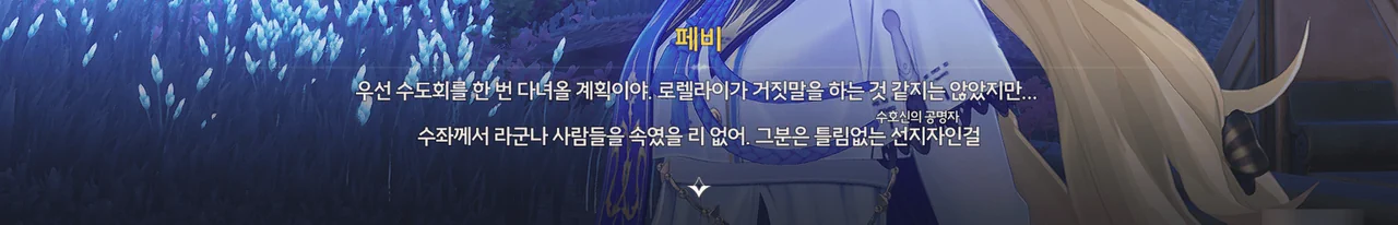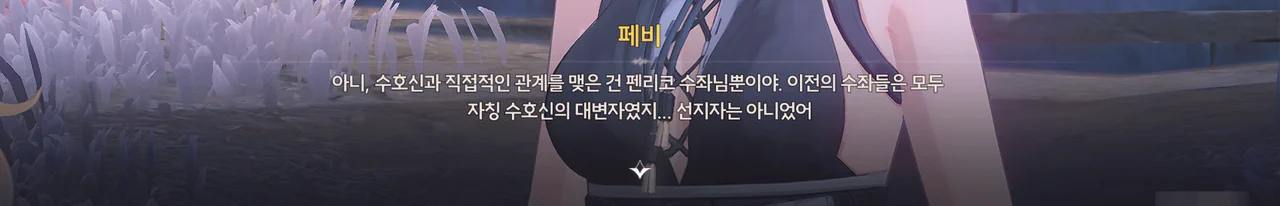 로렐라이의 말이 맞다면, 수호신의 공명자라고 알려진 현 수좌, 펜리코는 '수호신의 공명자'가 아닌, 역대 수좌들이 그랬던 것처럼 자칭 '수호신의 대변자'일뿐이니까.