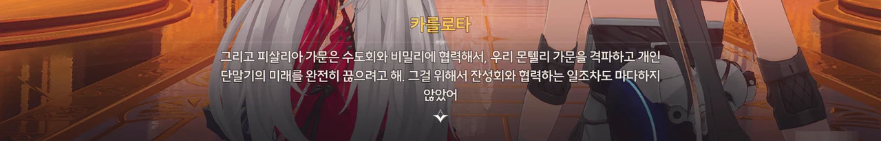심지어 수도회는 몬텔리 가문을 완전히 몰락시키기 위해, 피살리아 가문은 물론 테러리스트로 규정된 잔성회와 까지 손을 잡았다.