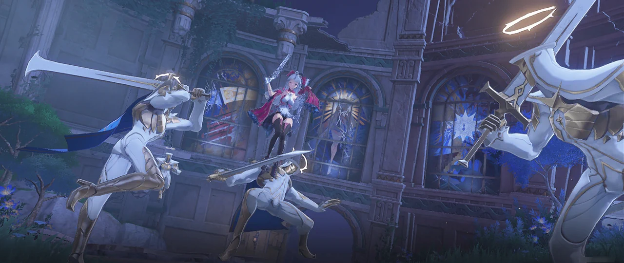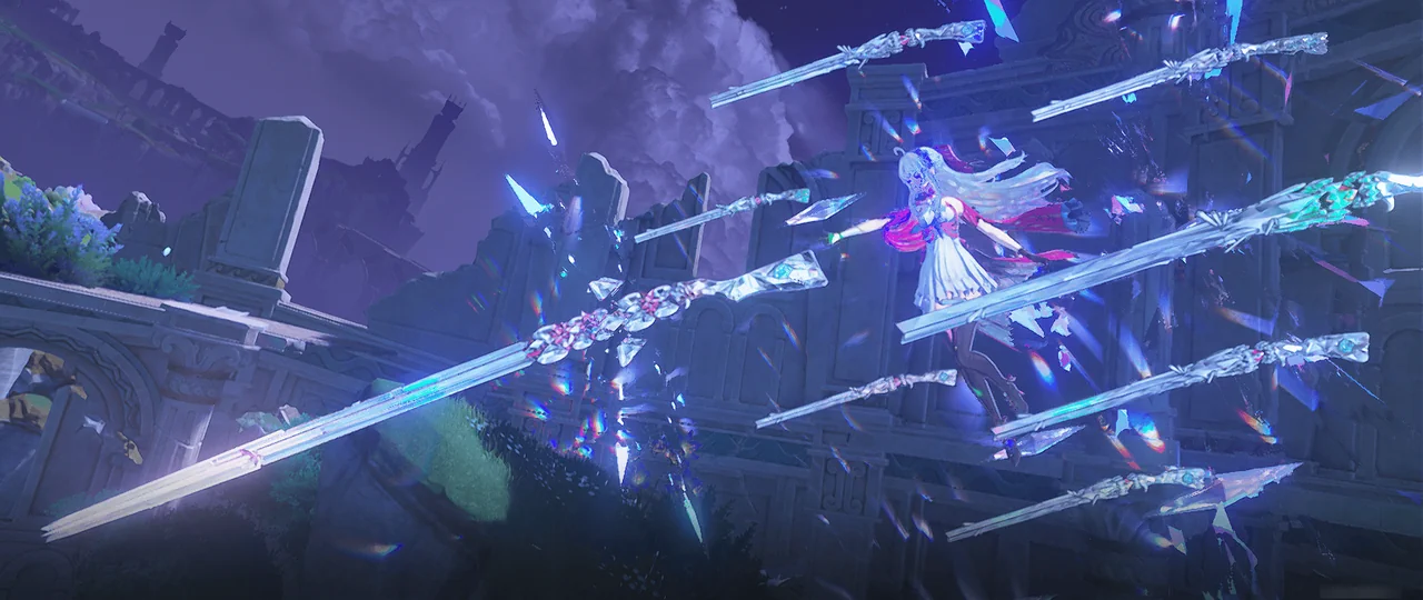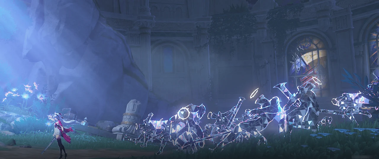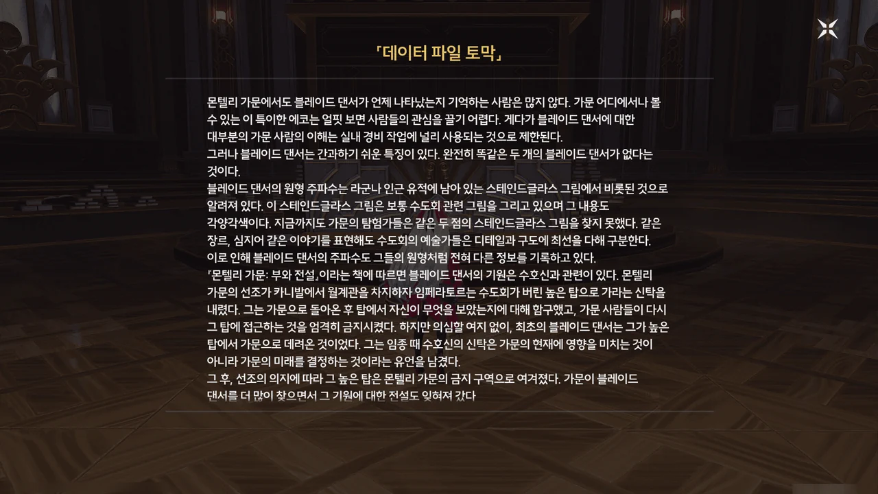 몬텔리 가문의 에코, 블레이드 댄서는 가문의 선조가 수도회가 버린 탑의 폐허에 있던 스테인드글라스에서 가져온 것이다.