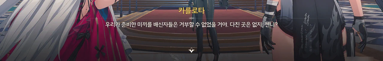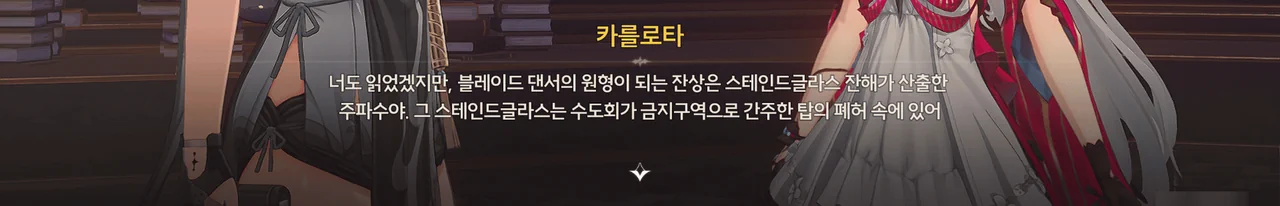 현장의 뒷수습은 포상 휴가를 받자마자 잘린(…) 젠니에게 맡기고, 방랑자와 카를로타는 스테인드글라스 탑으로 향했다.