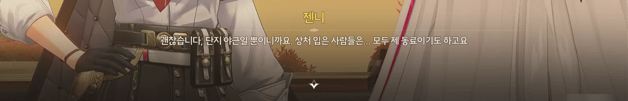 젠니가 금고에서 무슨 일이 있었냐고 물었다가, 거기 있었던 일은 분명 가문의 핵심 기밀일 테니 답하지 않아도 된다고 말을 바꿨다.