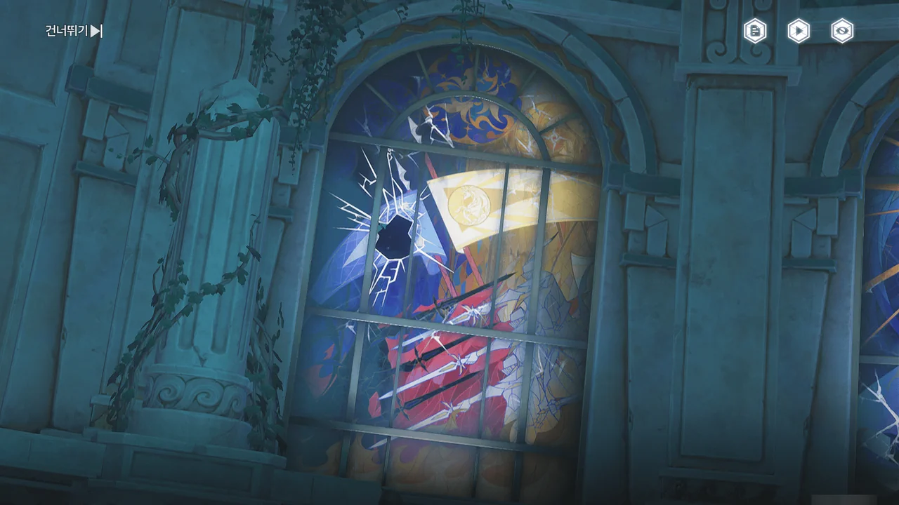 스테인드글라스 곳곳이 마치 고의로 파손한 것처럼 깨져있다.