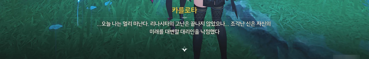 "리나시타의 고난은 끝나지 않았으나 조각난 신은 자신의 미래를 대변할 대리인을 낙점했다."