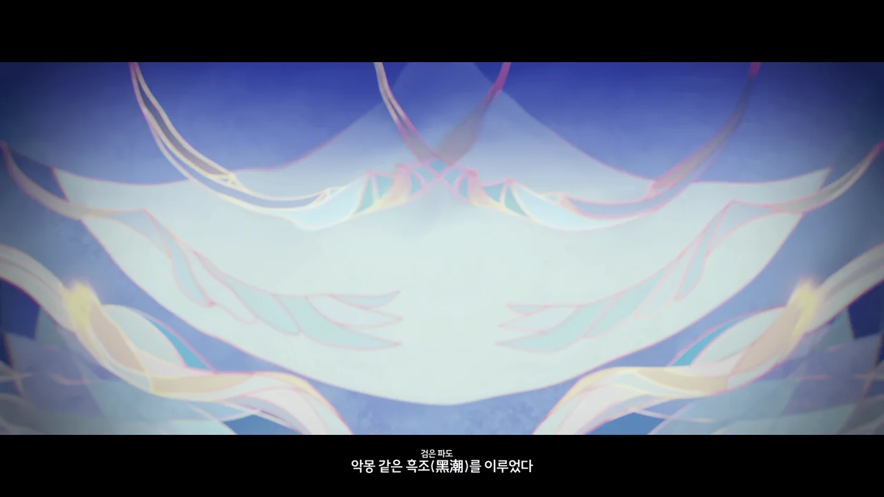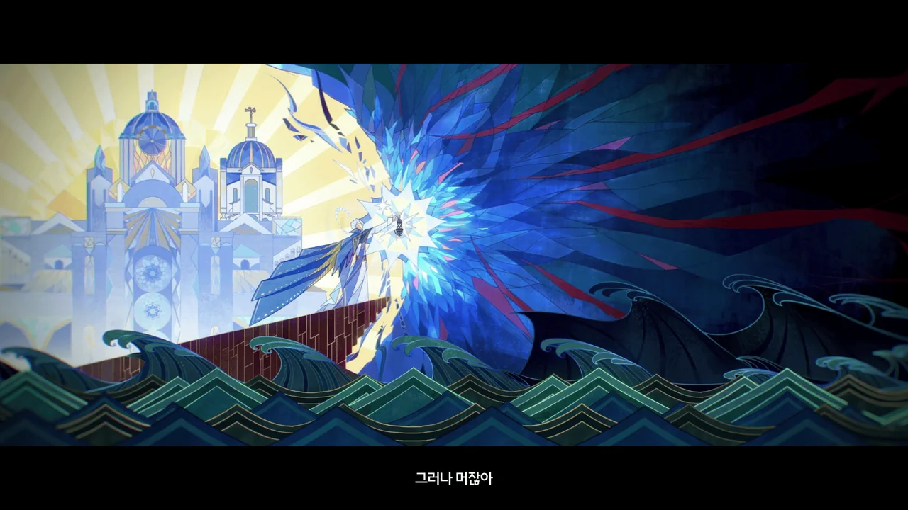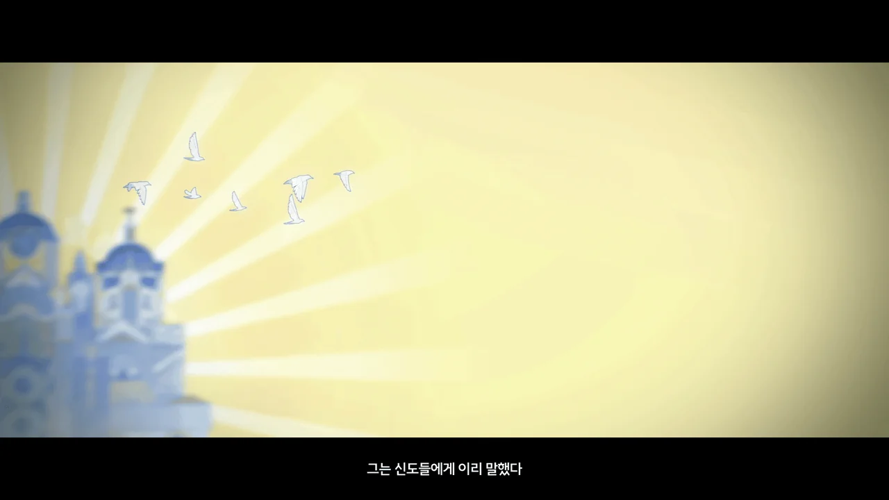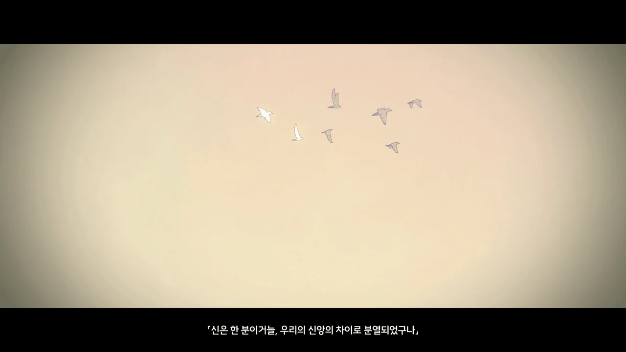 "신은 한 분이거늘, 우리의 신앙의 차이로 분열되었구나. 수호신의 상처에서 흐르는 피가 악몽 같은 흑조를 이루었다."