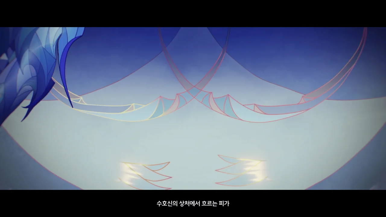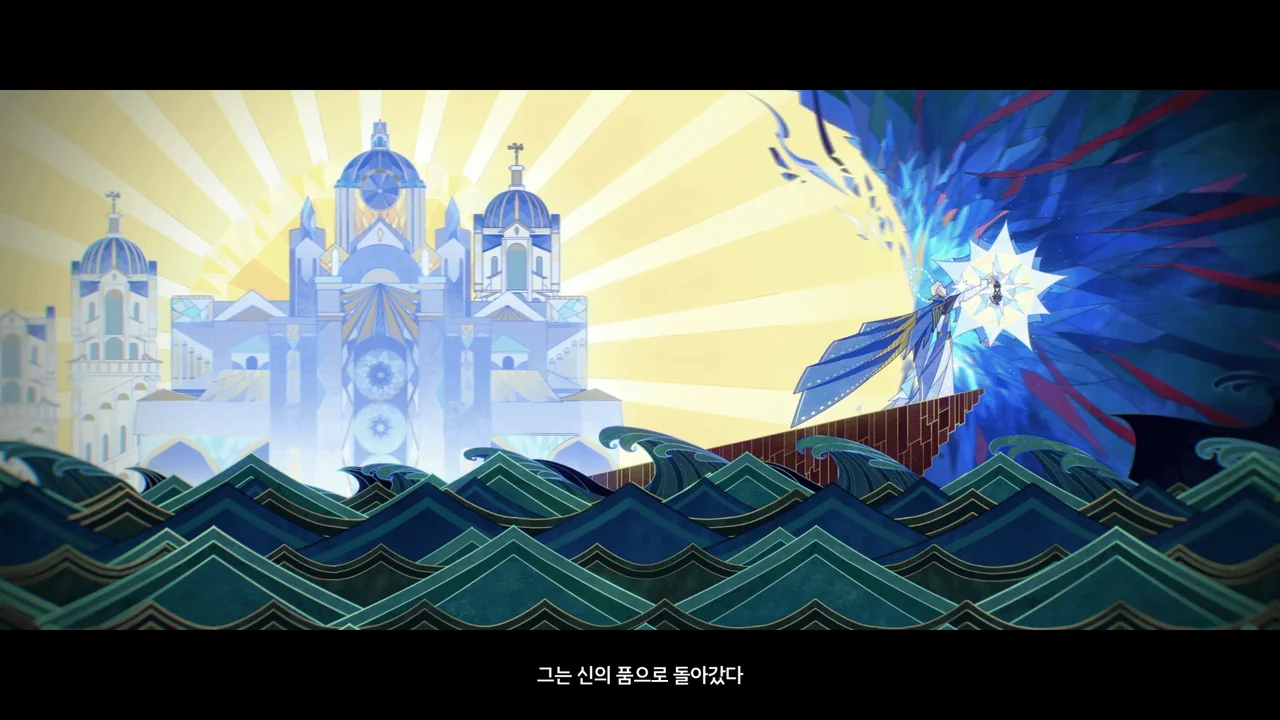 신은 한 분이거늘, 우리의 신앙의 차이로 찢어졌구나. 수호신의 상처에서 흐르는 피가 악몽 같은 흑조를 이루었다.