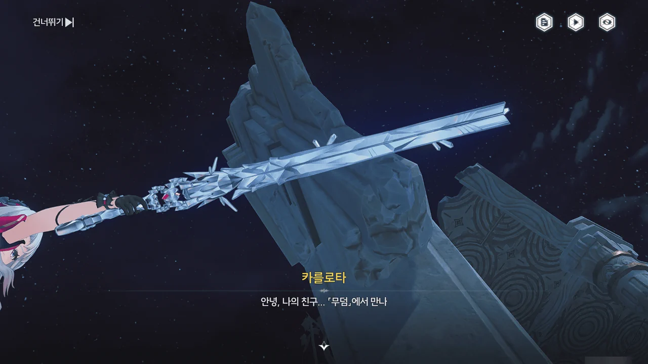 그에 카를로타는 방랑자에게 "「무덤」에서 만나"라는 말을 남기고, 일부러 탄을 빗맞추어 탑을 무너트린다.