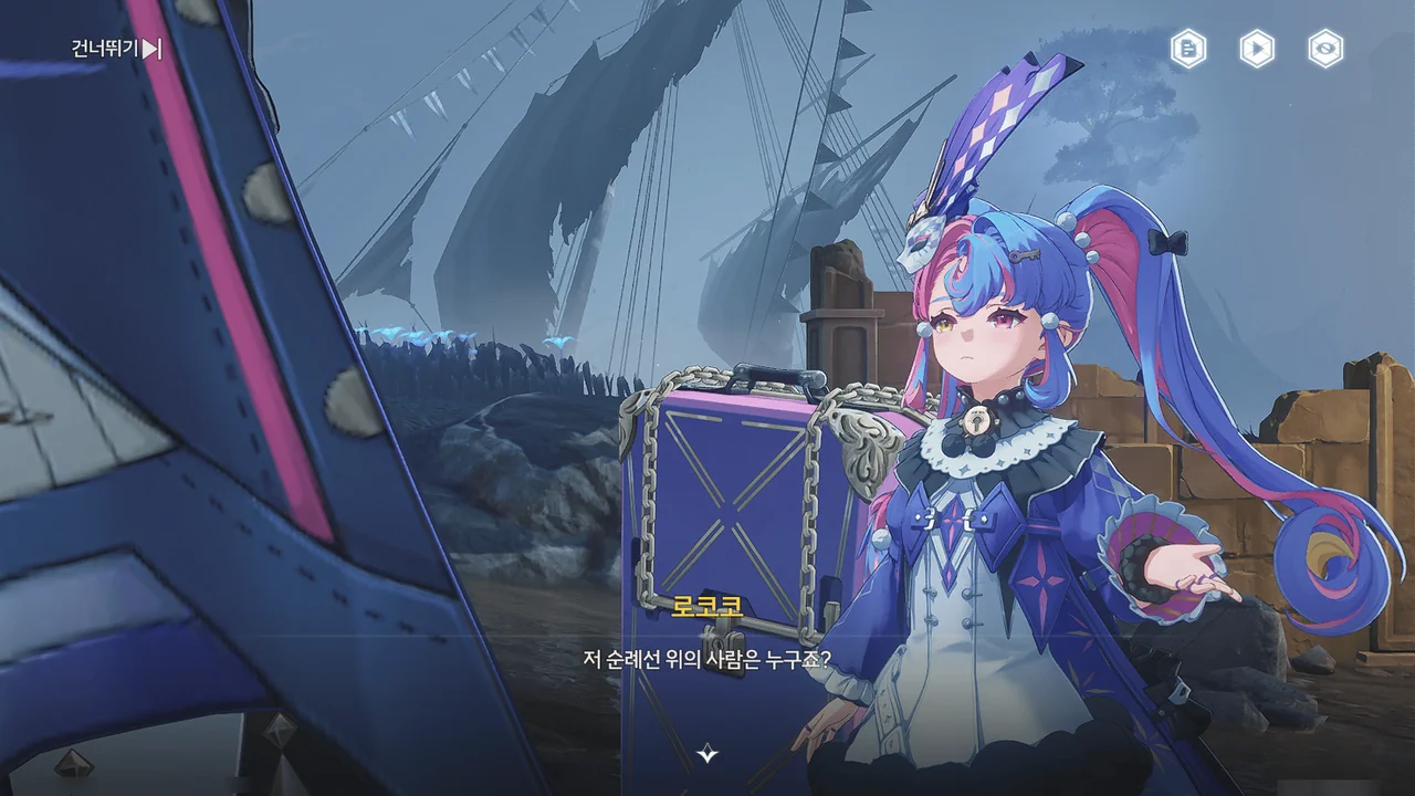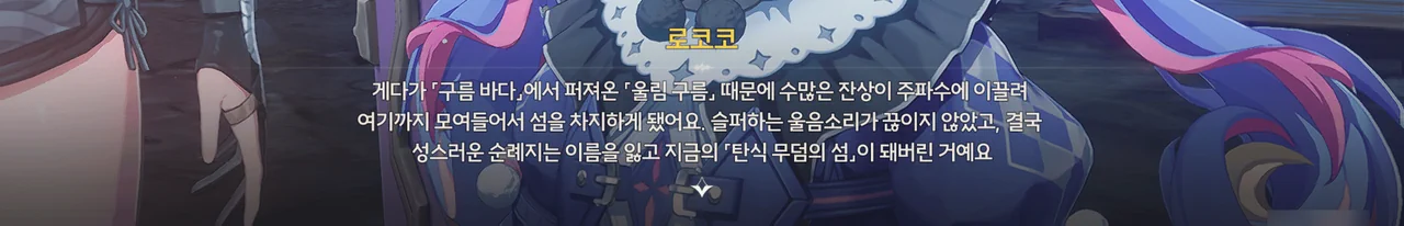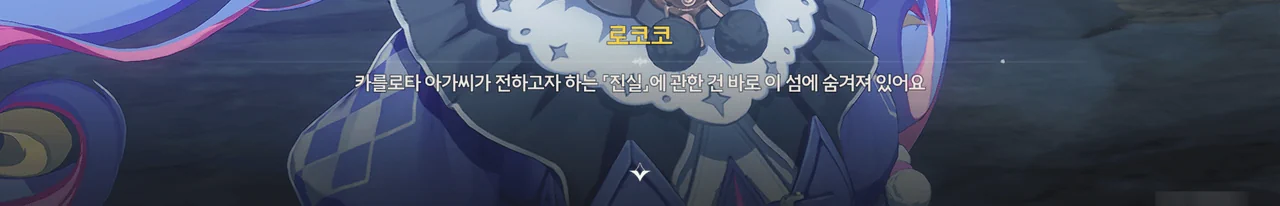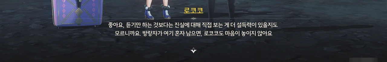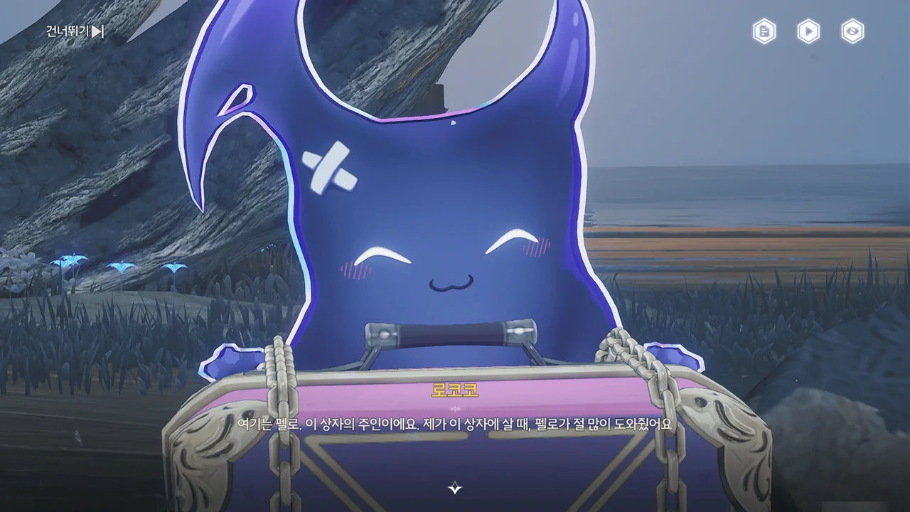 왜 그런가 해서 로코코 캐릭터 스토리를 찾아 읽어보았는데, 해변에 난파한 순례선 근처에 정신을 잃고 쓰러진 로코코 앞에 나타난 게 바로 펠로와 여행상자였다고 한다.