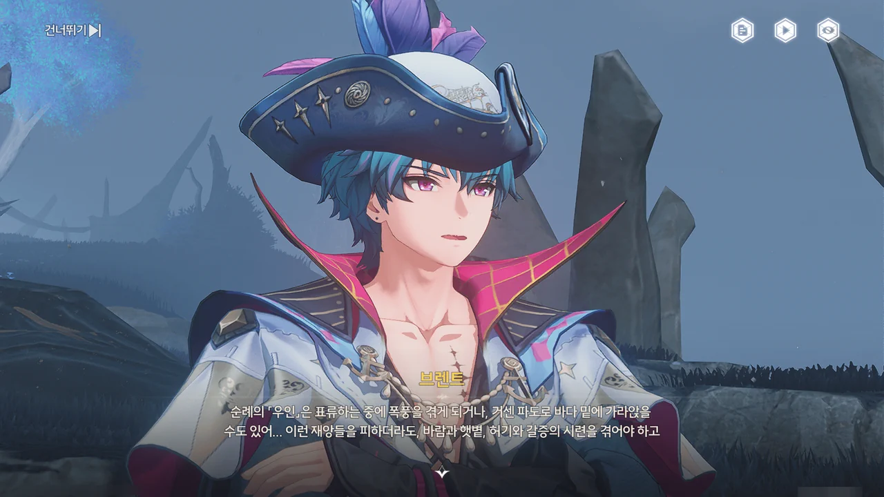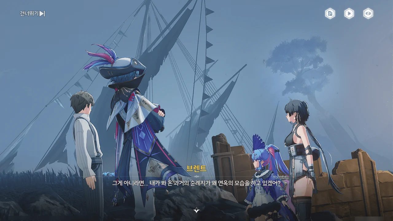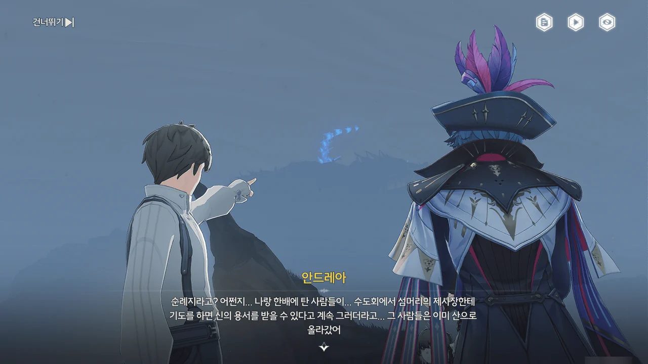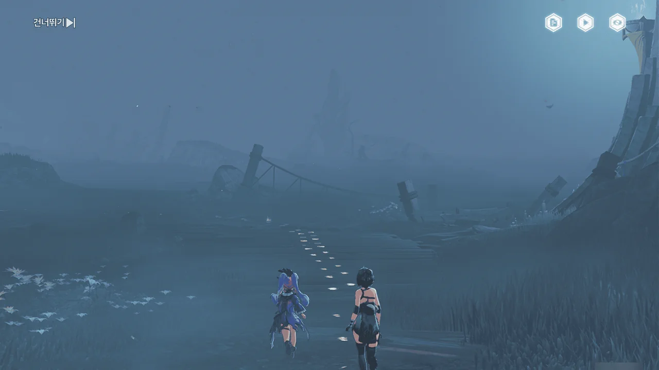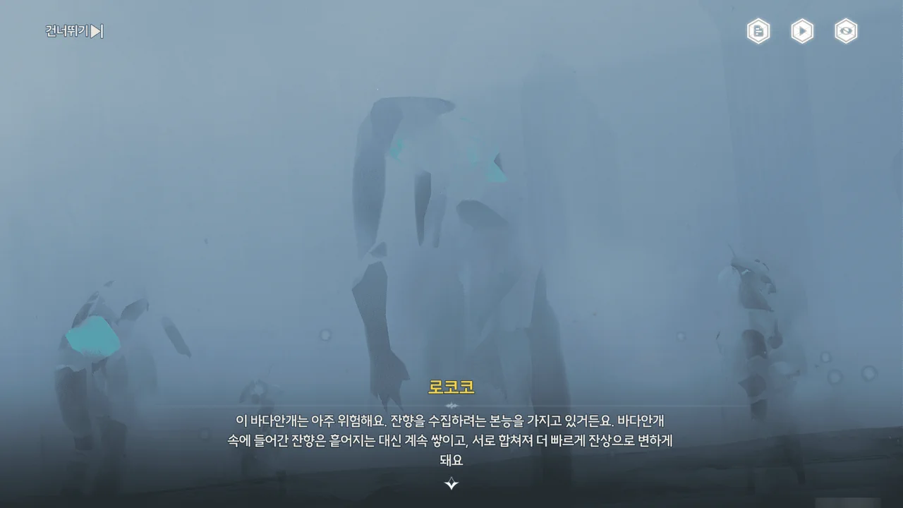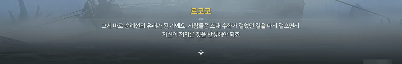 바다 안개 때문에 아직 흩어지지 못한 잔향이 방랑자 일행을 어디론가 인도한다.