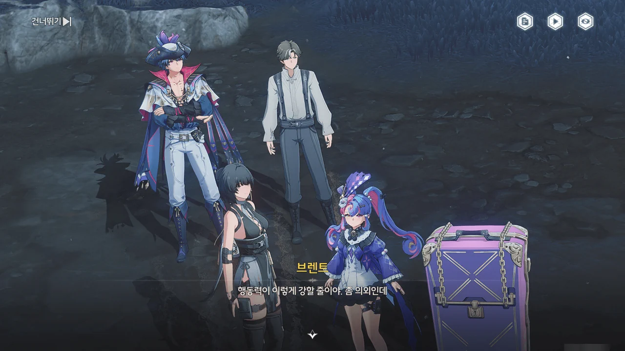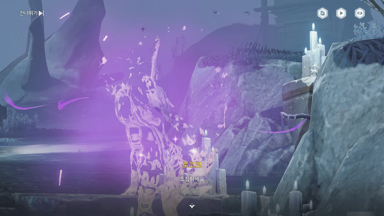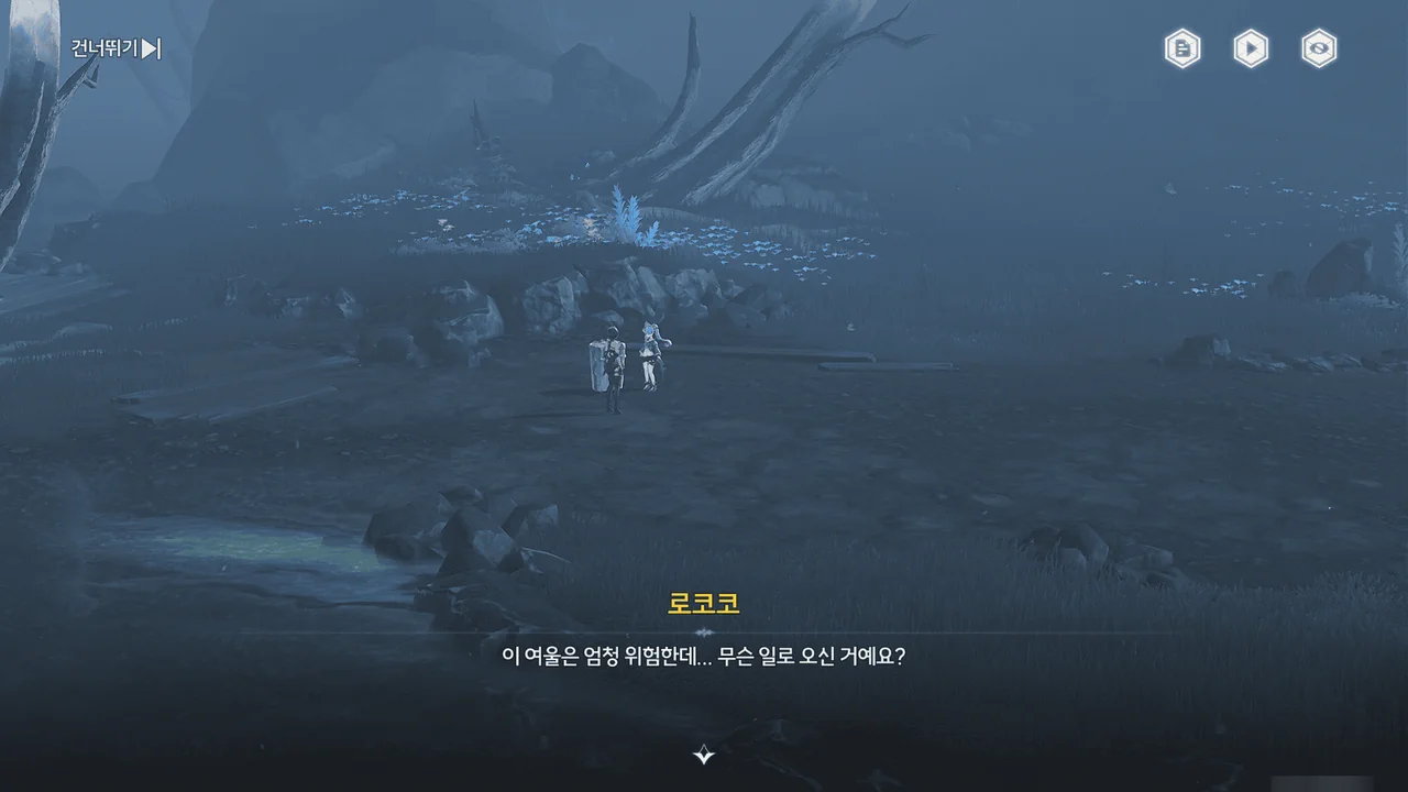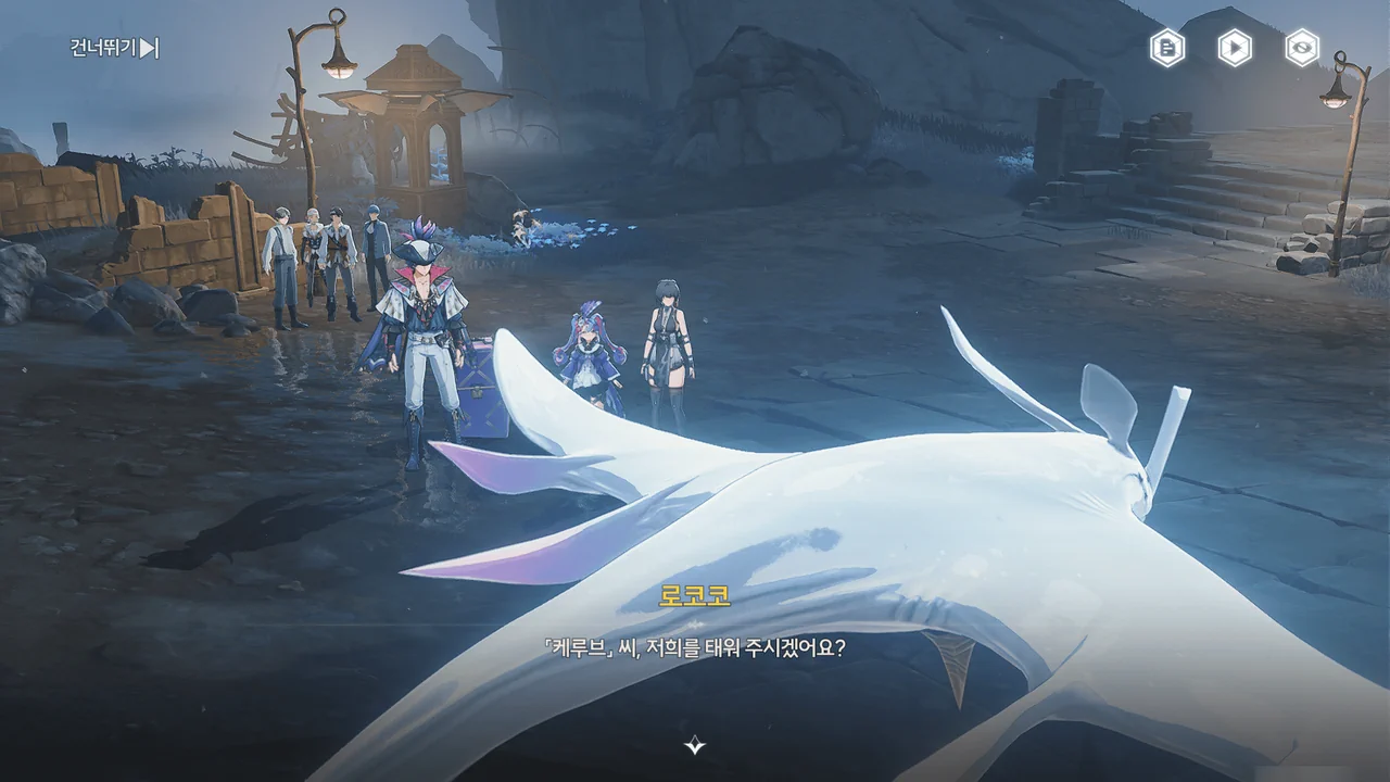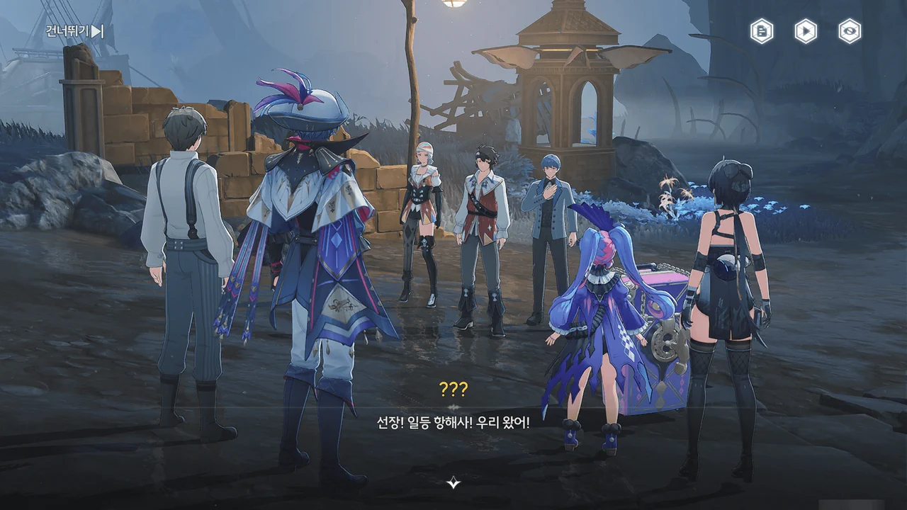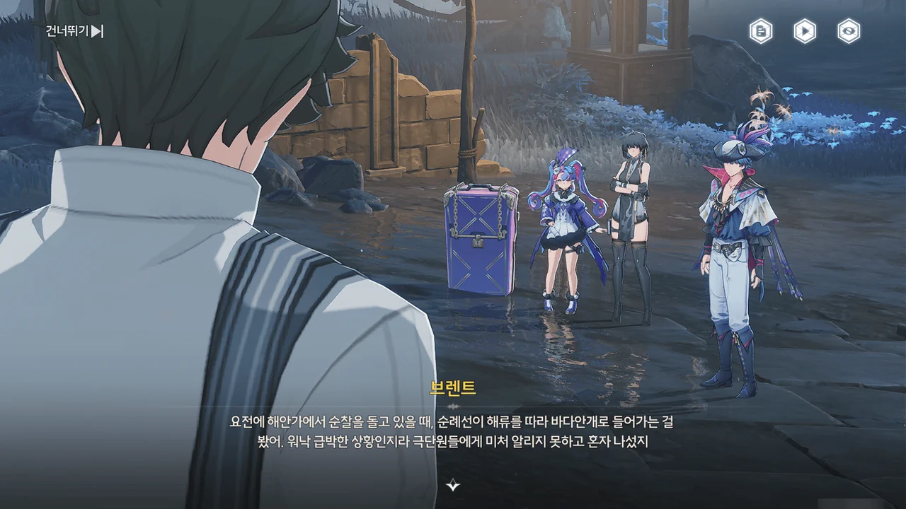바다 안개 때문에 아직 흩어지지 못한 잔향이 방랑자 일행을 어디론가 인도한다.