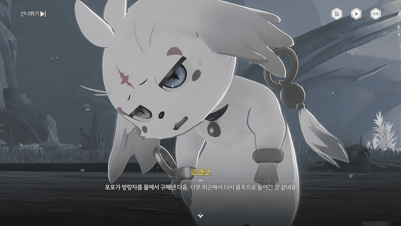 여행가방 안에서 튀어나온 건 '펠로'라고 하는 녀석인데, 설지의 '우담'처럼 로코코의 공명 어빌리티가 울림 생물의 형태로 구현된 게 아닐까 생각한다.