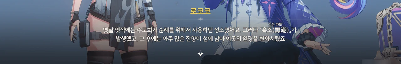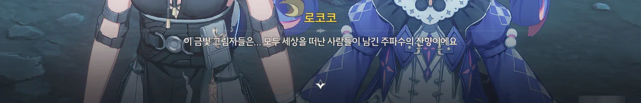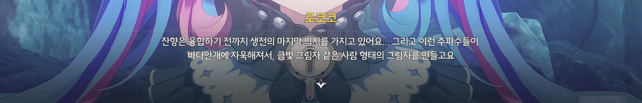 로코코가 「바다반디석」을 들고 다니는 건 잔향이 물건에 달라붙는 성질을 이용해, 죽은 사람들의 잔향이 고룡에게 먹혀 사라지는 걸 막기 위해서였고.