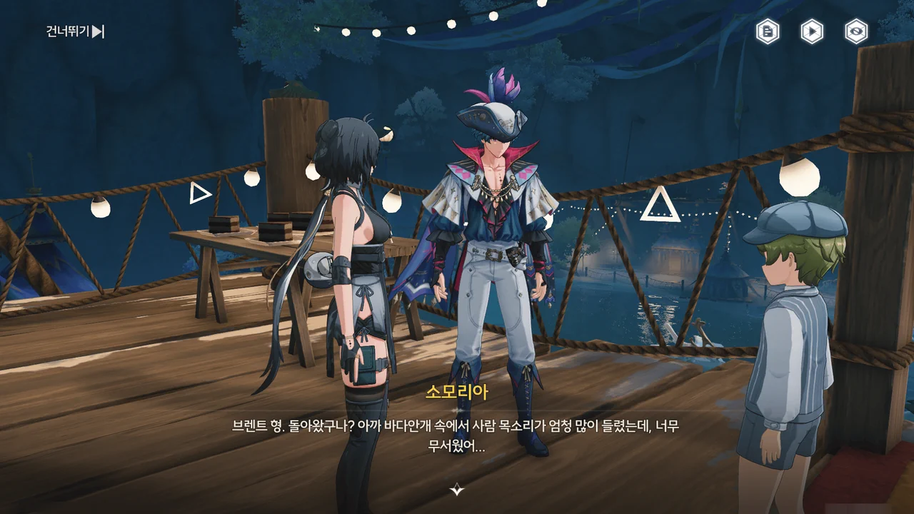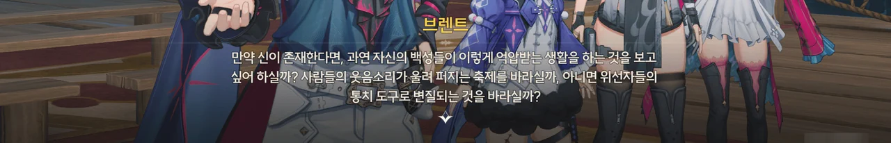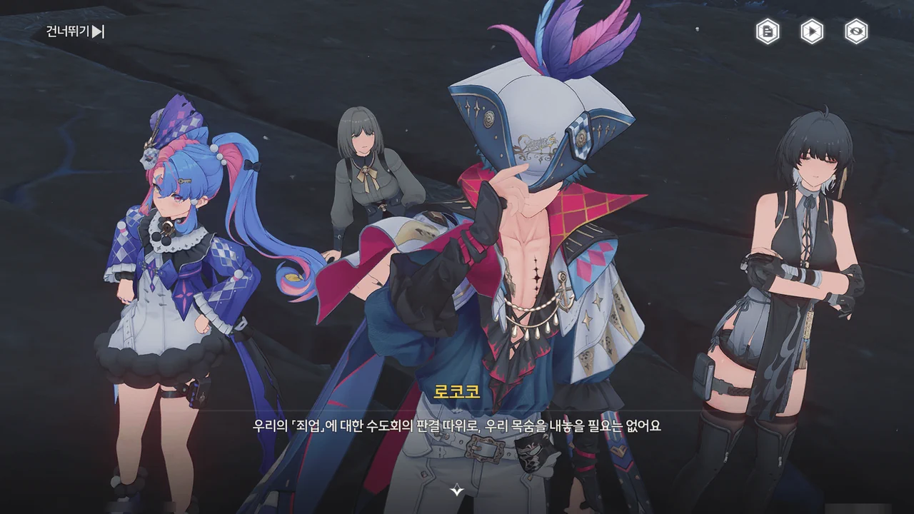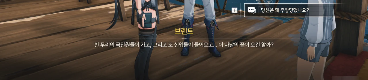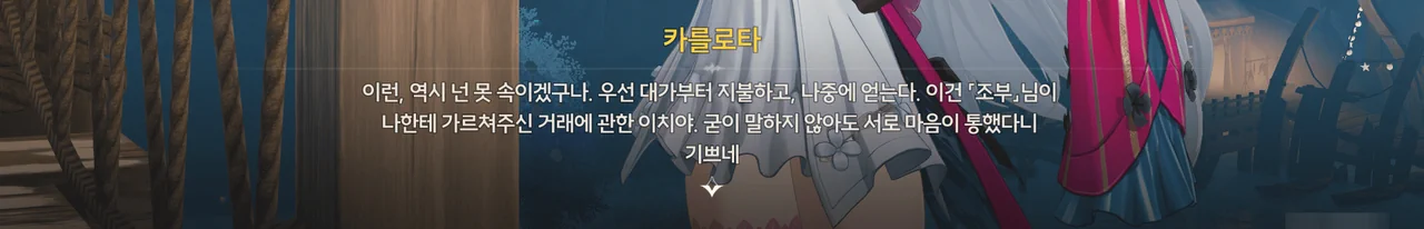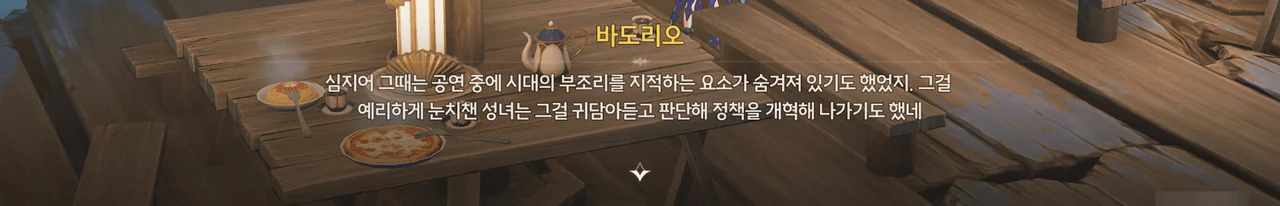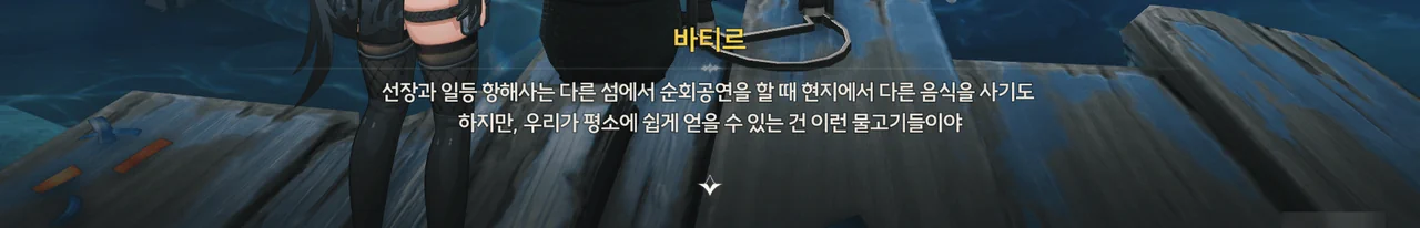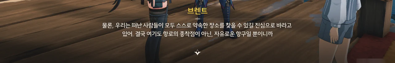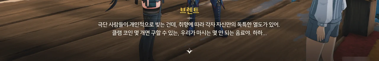브렌트 보통 명령을 내리는 건, 항해사보다는 선장 쪽 아닌가? 로코코 불만이 있다면 브렌트가 술을 숨겨놓은 곳을 극단 멤버들한테 폭로할 거예요. 브렌트 맡겨만 주시죠, 일등 항해사님!