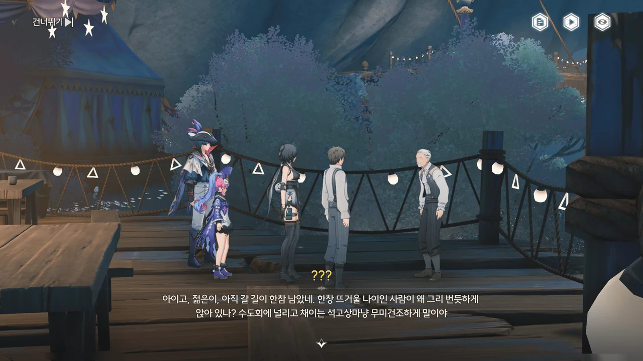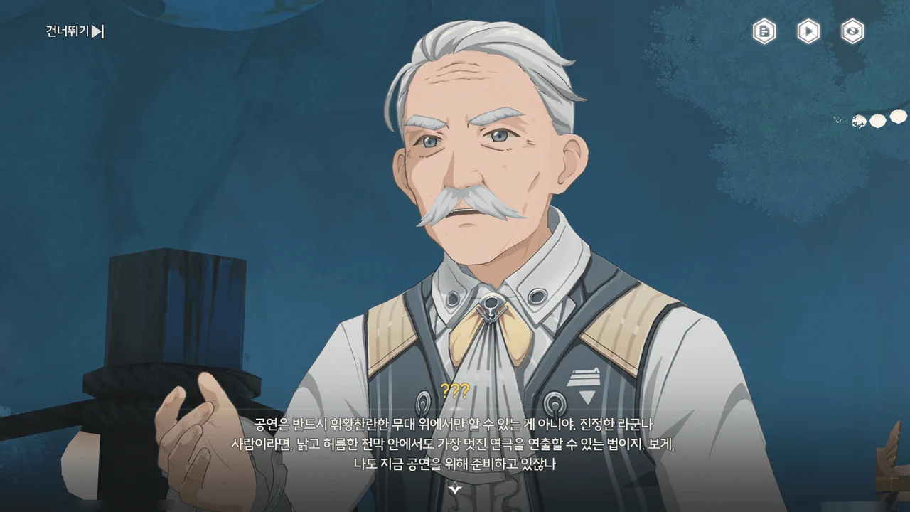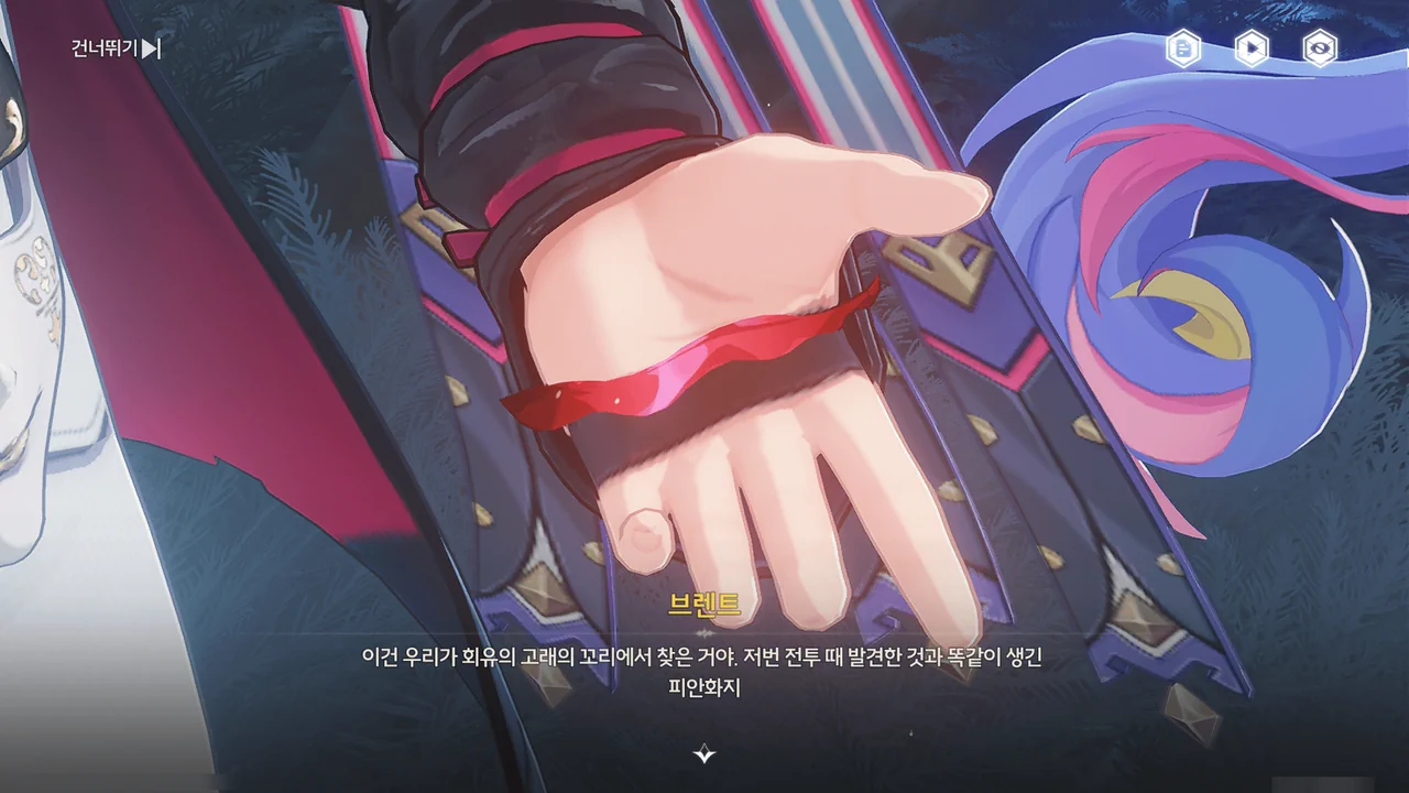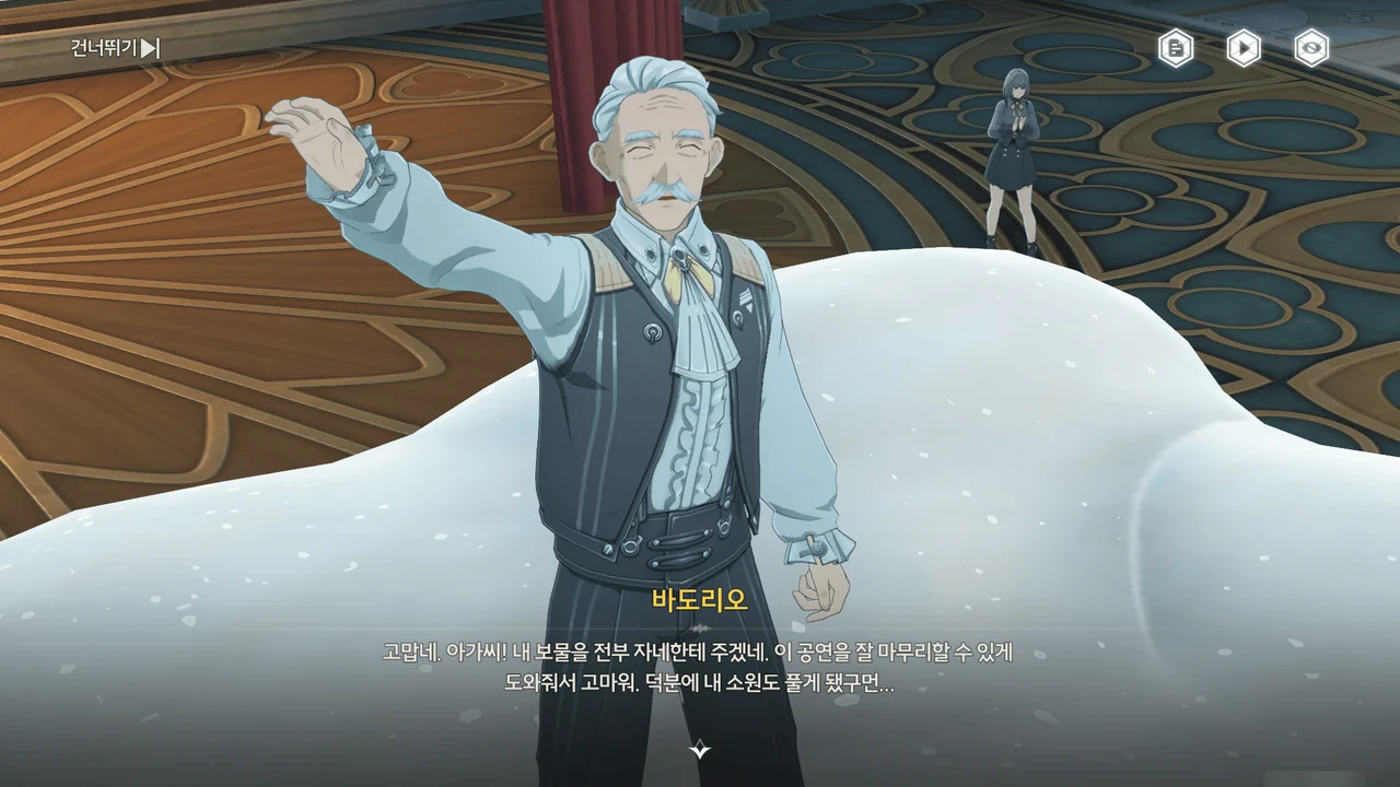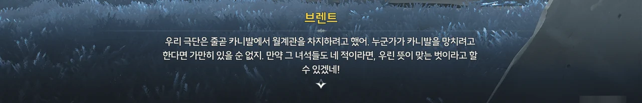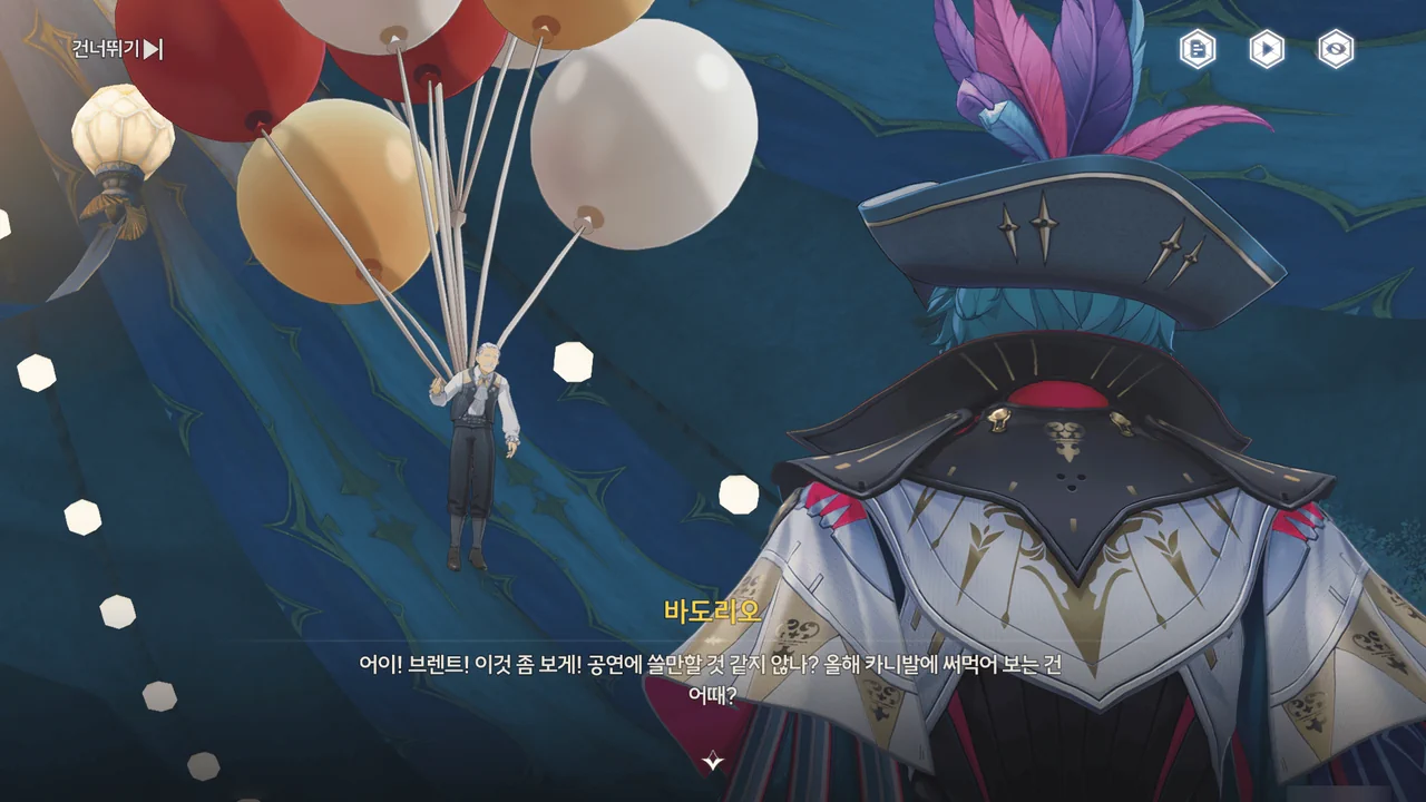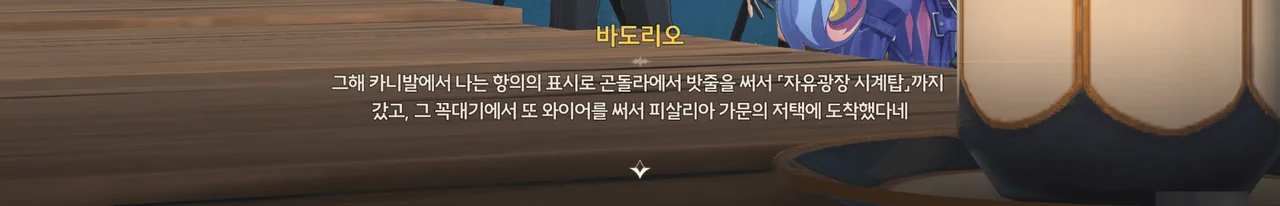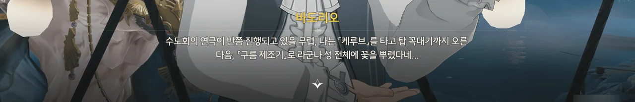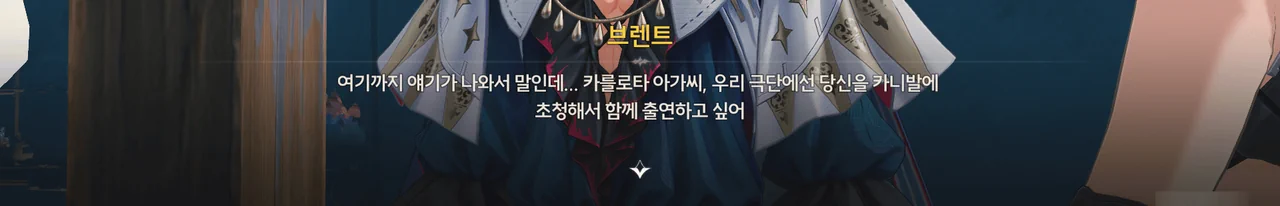 마침 카니발에서 「영광의 월계관」을 얻은 사람이 우인 극단의 아지트에 머물고 있다기에, 브렌트와 함께 거기로 향하기로 한다.