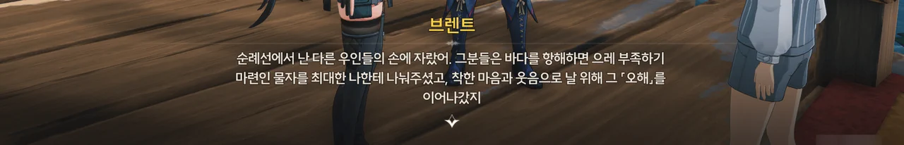 같은 순례선에 탄 다른 우인들이 브렌트에게 부족한 물자를 나눠주고 그의 동심을 지켜준 덕분에 브렌트는 무사히 자랄 수 있었다.